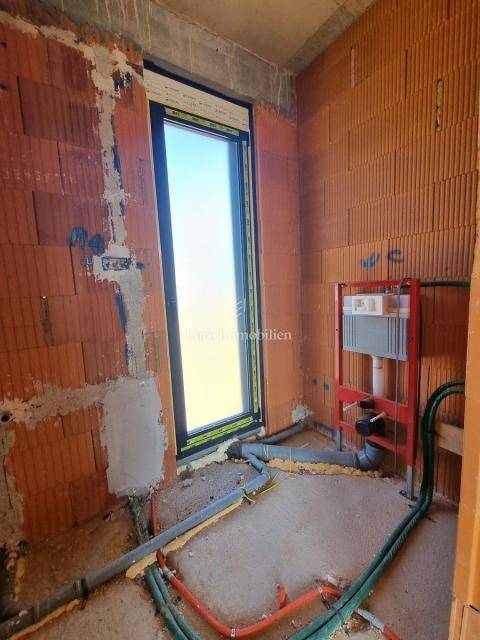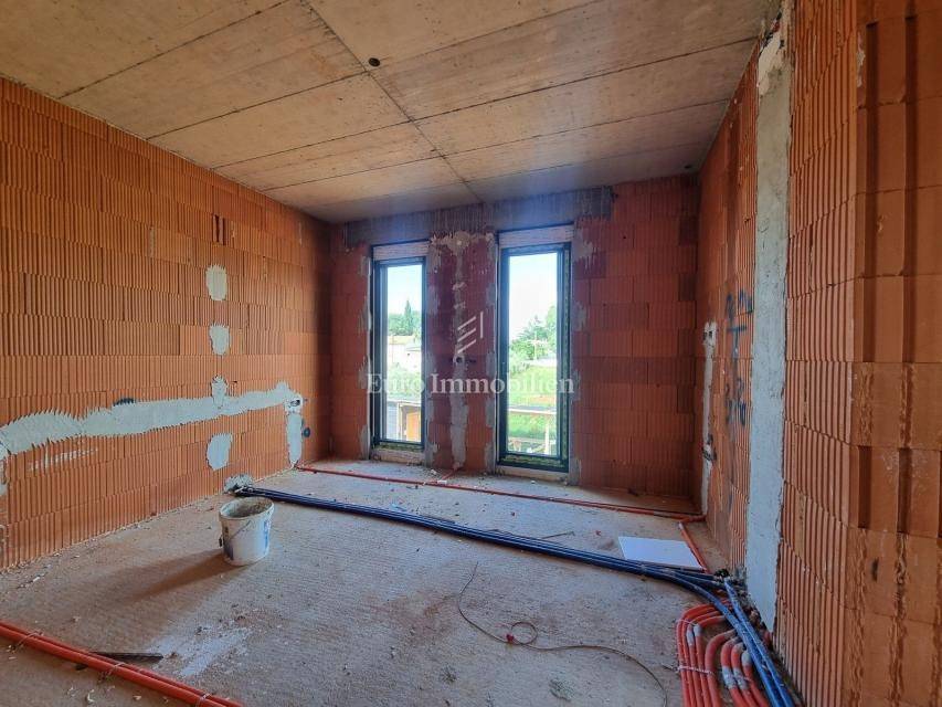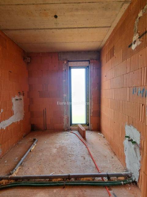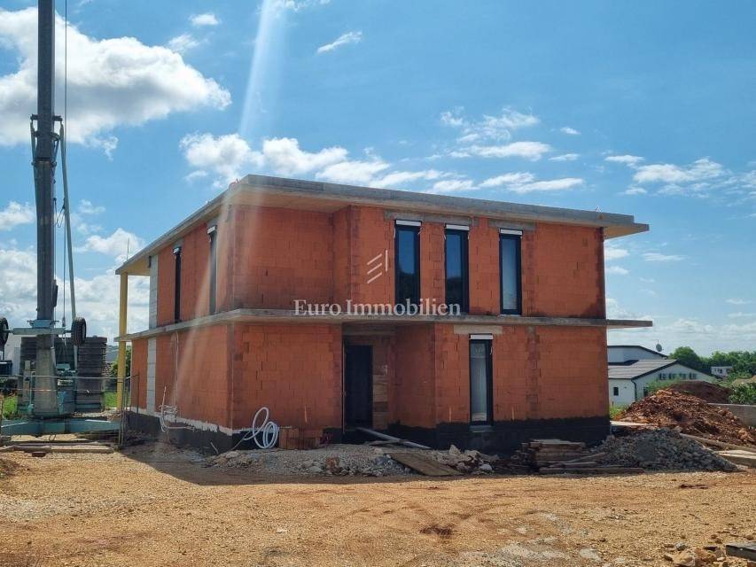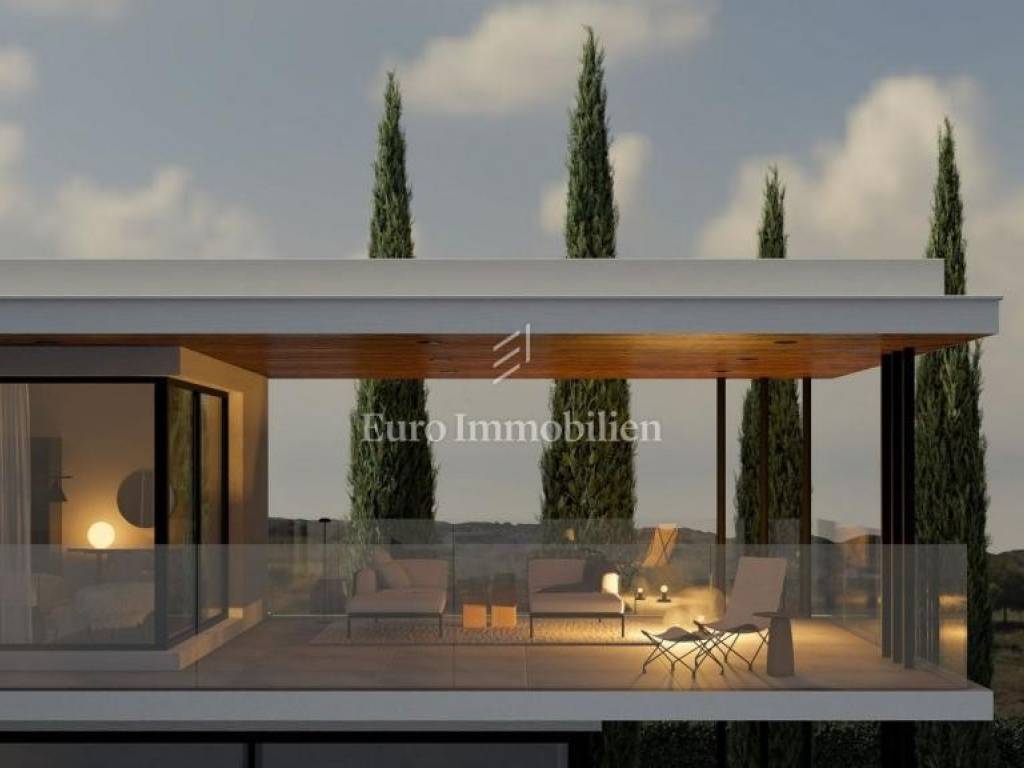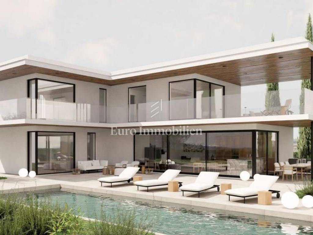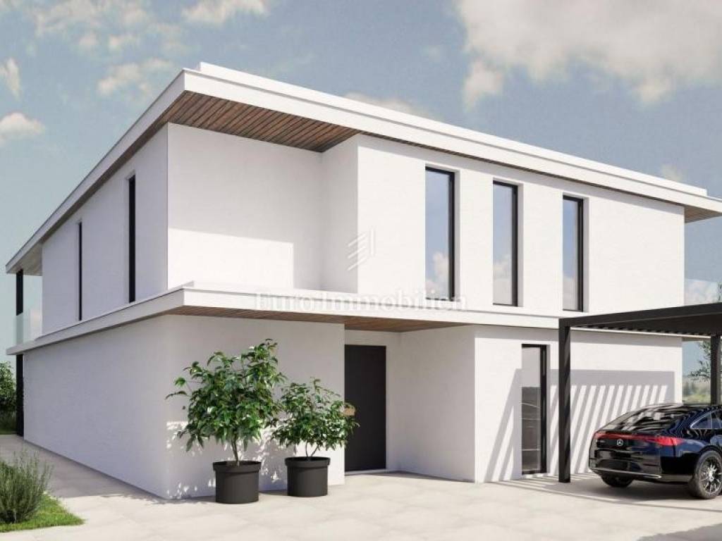 A beautiful villa of modern design is for sale, located in a small Istrian town not far from Poreč, only 8 km from the sea. It has a net usable area of 330.50 m2, and is located on a plot of 971 m2. It extends to the ground floor and first floor. On the ground floor there is an entrance hall, a large spacious living room - open space concept that is designed for the kitchen, dining room and living room, one bedroom with its own bathroom, toilet and storage room. The living room and the room have access to the terrace, garden and pool. Internal stairs lead to the first floor where there are three more bedrooms, each with its own bathroom. The master bedroom has access to a spacious covered terrace with a partial view of the sea. A large swimming pool and parking spaces are provided in the garden. The heating is underfloor with a Mitsubishi air-water heat pump, the cooling is a Mitsubishi multisplit. The exterior joinery is aluminum with blinds, mosquito nets and electric lifters. The entrance door is Pivot, while the interior door is Invisible, 2.30 meters high. Ceramics measuring 120 x 230 cm are provided in the bathrooms, and ceramics measuring 12 x 4 cm in the pool. The house is sold with installed ceramics and sanitary ware, installed parquet and ceramic floors, but without furniture.