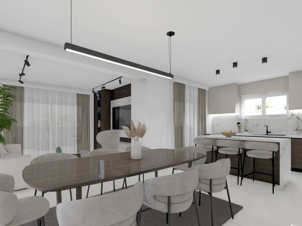 - prostrani dnevni boravak s kuhinjom i blagovaonicom, iz kojeg se izlazi na veliku terasu savršenu za uživanje u otvorenom prostoru.