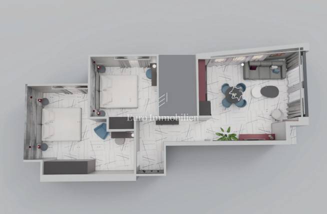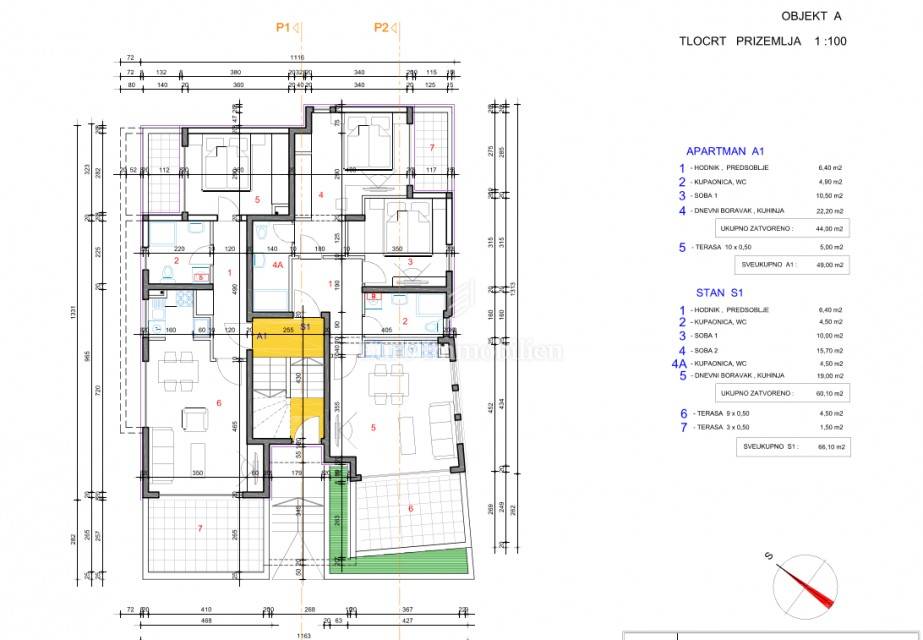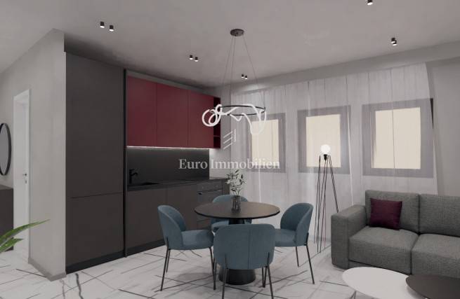 On the ground floor and on both floors there are two apartments, one with a one-bedroom apartment with a living room, and the other with two bedrooms with a living room. The ground floor apartments have part of the garden in their ownership, and all have a sea view. The two-bedroom apartments are designed so that they can easily be divided into two (studio and one-bedroom), with balconies. All apartments are air-conditioned (each room has air conditioning) and there is also a parking space in the ownership. The property is VAT registered, built by a verified investor.