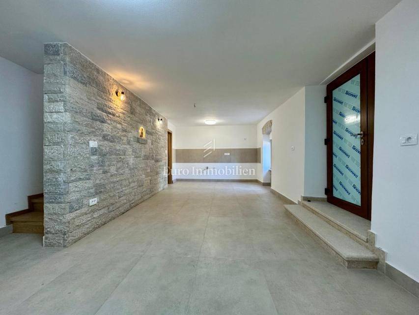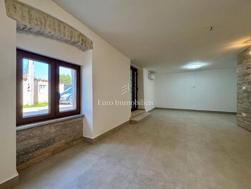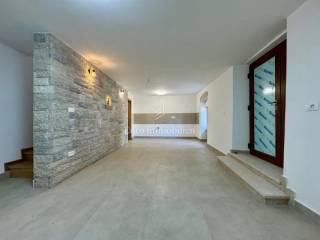 The house has a total living area of 65 m², spread over two floors - ground floor and first floor. The ground floor consists of a kitchen with dining room, living room and storage room, while the first floor includes two bedrooms and a bathroom. Each bedroom is equipped with air conditioning, and an additional air conditioning unit is located on the ground floor. The house has electricity, water and sewage connections.