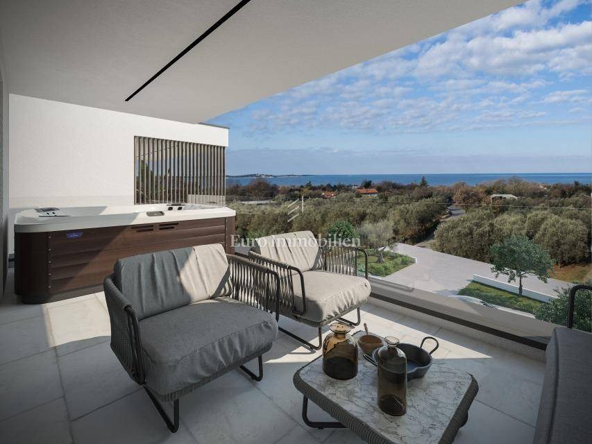 Located in a new, top-quality building currently under construction, this 91.44 m² apartment is ideal for family living or as a lucrative investment. Here are the closest apartments by the sea in the area, with easy access to the beaches via a safe and traffic-free road. The promenade along the sea provides easy access to Fažana and Pula, with beautiful views. The apartment includes 2 bedrooms, an open concept kitchen, dining and living room, a terrace with sea views and a storage room in the basement for seasonal items and bicycles. It also comes with 2 parking spaces that will have the option of connecting to charge electric cars, making it a future-proof home. Ownership is neat, 1/1. This apartment is ideal for both rental and comfortable everyday life, making it an excellent choice for various needs. The proximity to popular destinations such as Fažana and the Brijuni National Park further increases its value. Don't wait for the completion of construction - the apartments are already available for reservation!