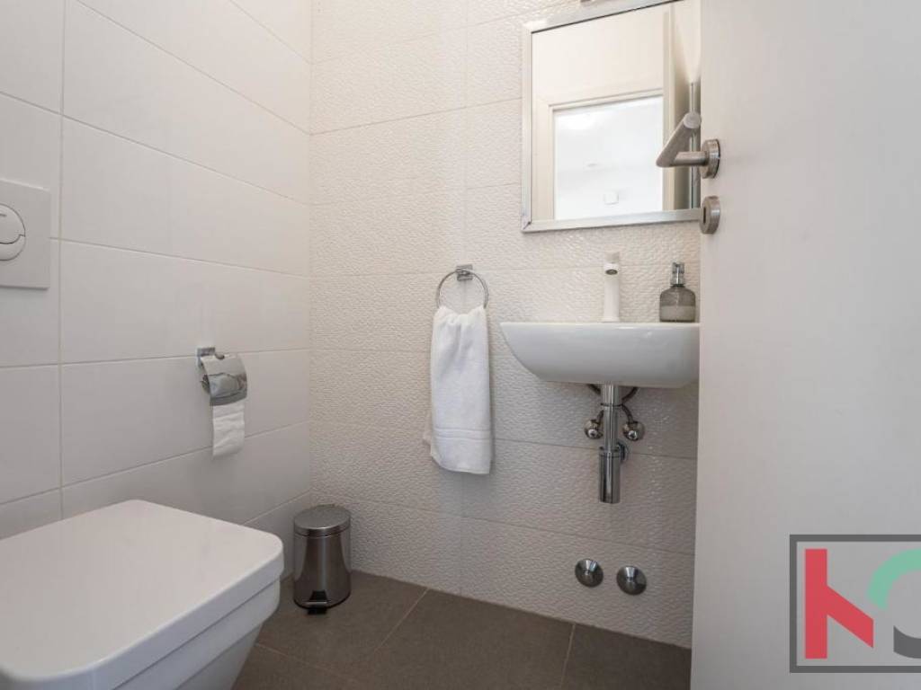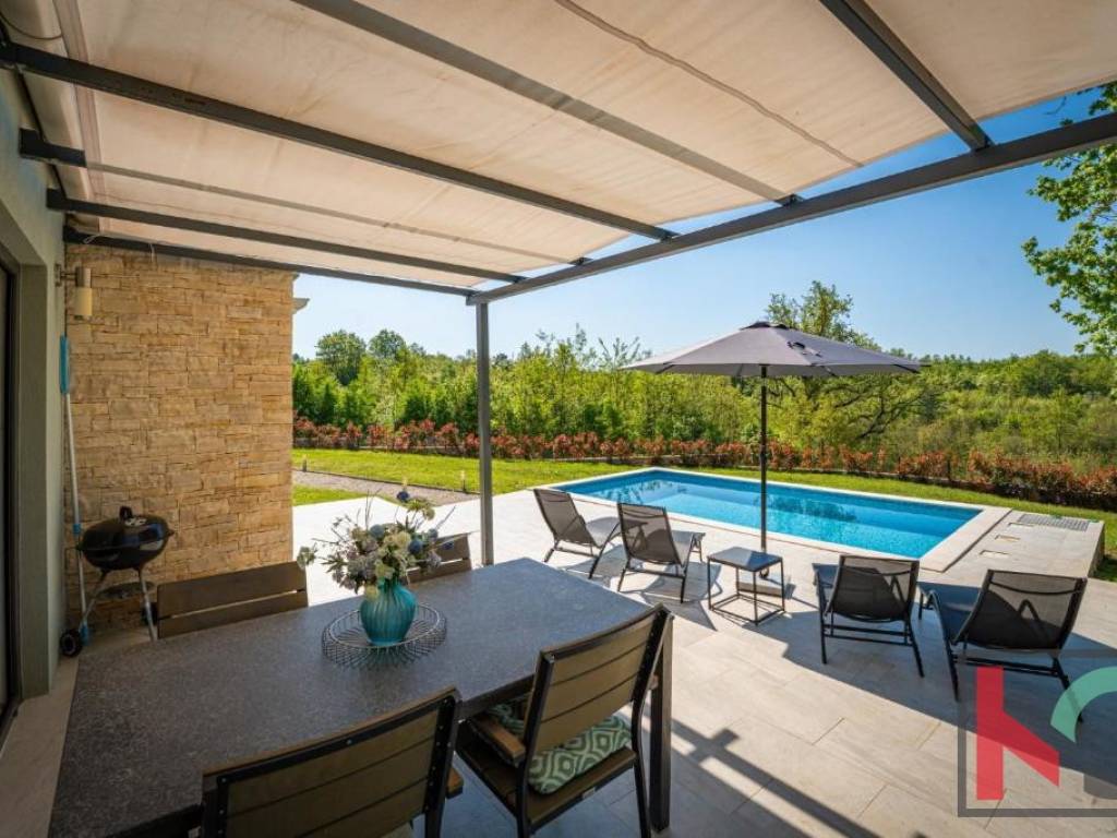 Dvorište je uređeno kao produžetak dnevnog boravka – tu je bazen za ljetna osvježenja, natkrivena terasa za druženja i roštiljanje.