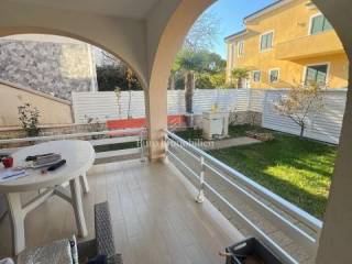 - landscaped and maintained yard; - 2 parking spaces; - possibility of arranging a summer kitchen; - water, electricity and sewage; - dead end street without noise and traffic; - chimney: wood heating; - air-conditioned; - landscaped and maintained without major investments; - storage room behind the house; - apartments are separated by an external staircase; - 5 min walk from the landscaped beach and the sea