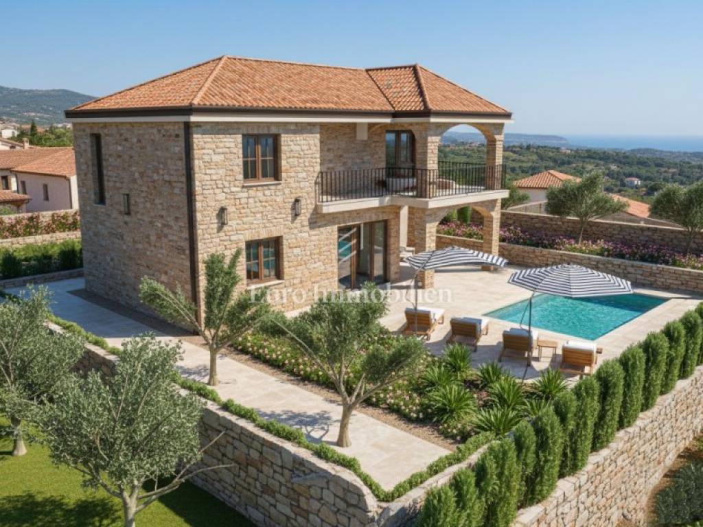 In a quiet location near Malinska, approximately 2 km from the sea, construction of a detached rustic stone house with a swimming pool is planned. The plot area is approximately 500 m², of which about 350 m² will remain as landscaped garden after construction.