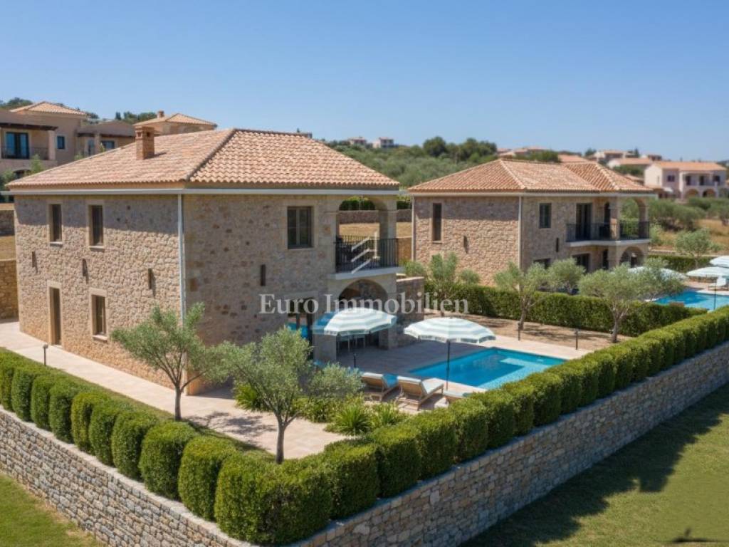 The house will be built using high-quality materials and equipment. It will feature electric underfloor heating, while the bedrooms will be fitted with high-quality parquet flooring. Windows and doors will be a combination of PVC and aluminium with shutters, and a traditional fireplace is planned in the living room. The façade will be clad in stone, emphasizing the rustic Mediterranean style.