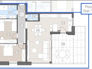 A two-bedroom apartment (S1-2) for sale on the ground floor of an urban villa in the center of Labin.