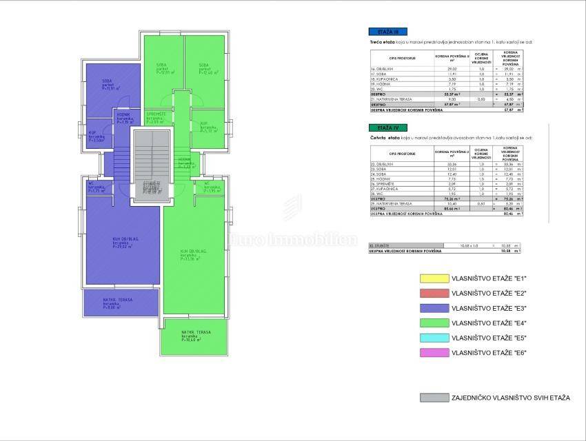 S6 (kitchen with dining area and living room, two bedrooms, hallway, bathroom, toilet and storage room, covered terrace, 2 parking spaces, covered roof terrace, two uncovered roof terraces) – 106.67 m² – €320,010