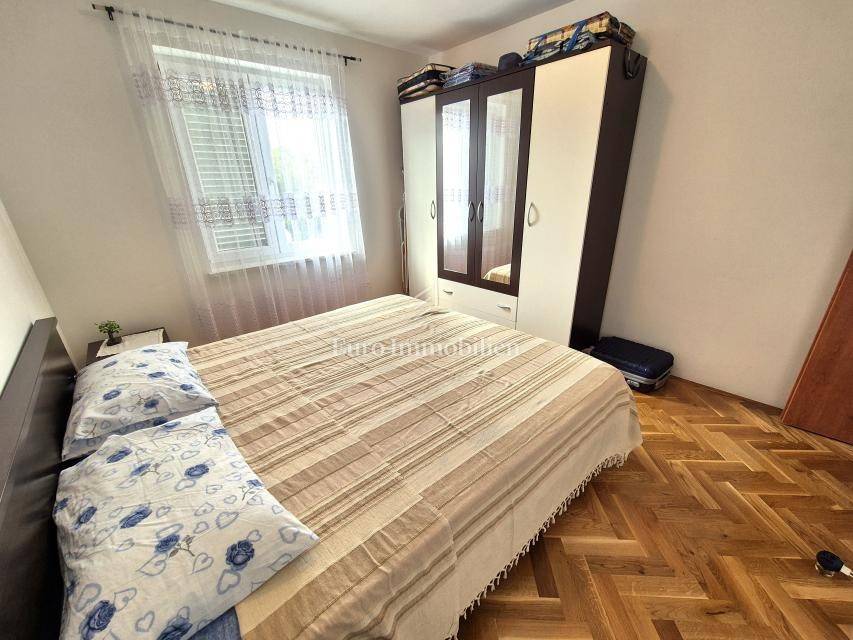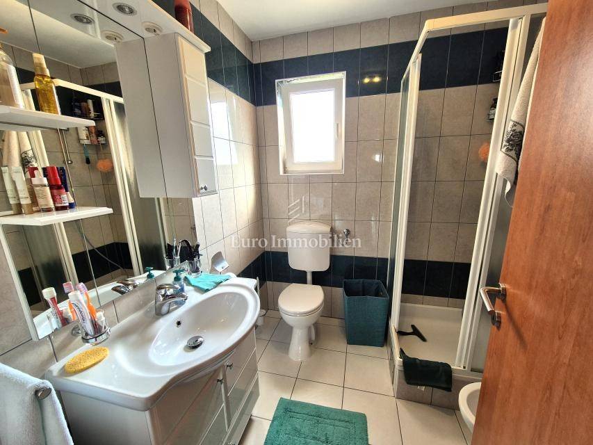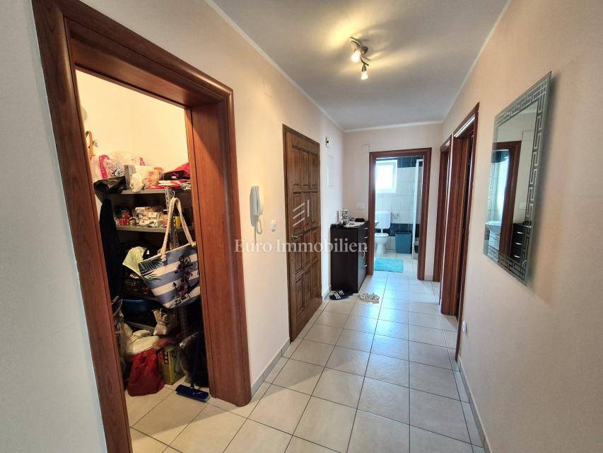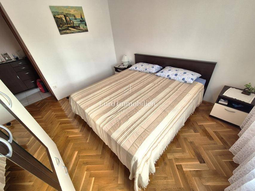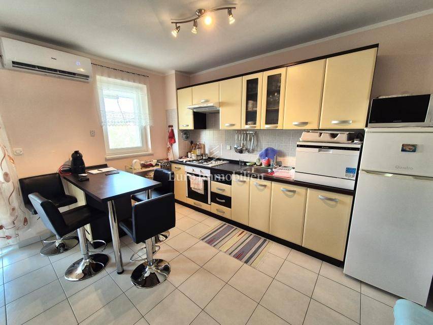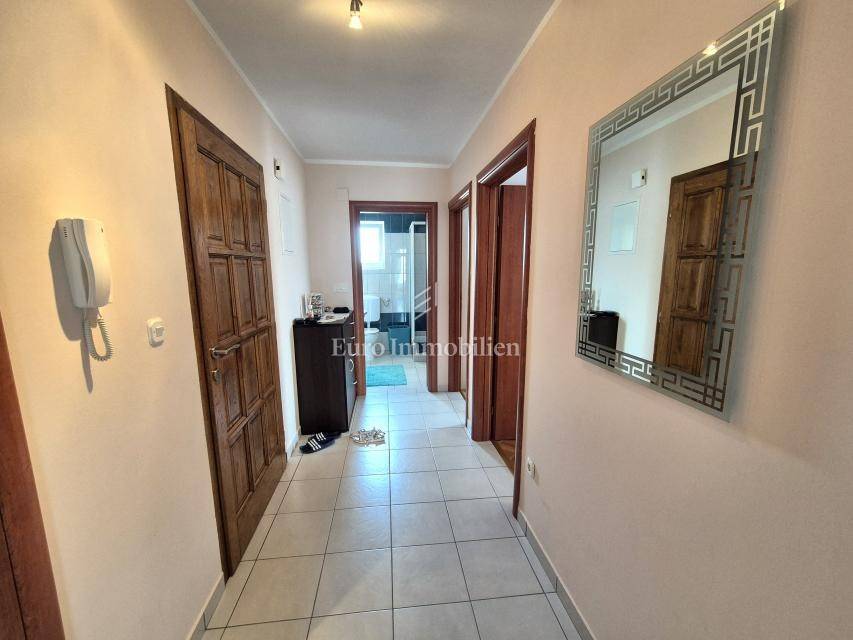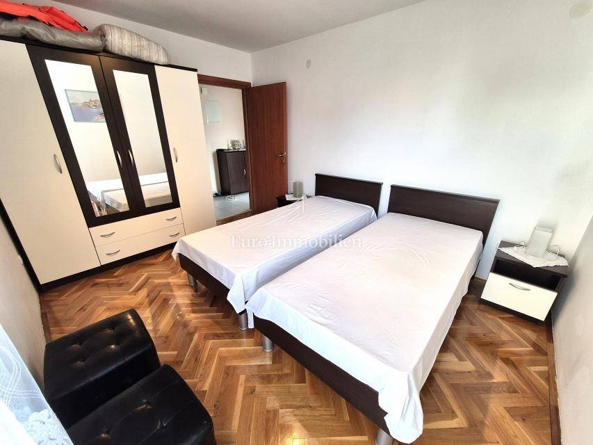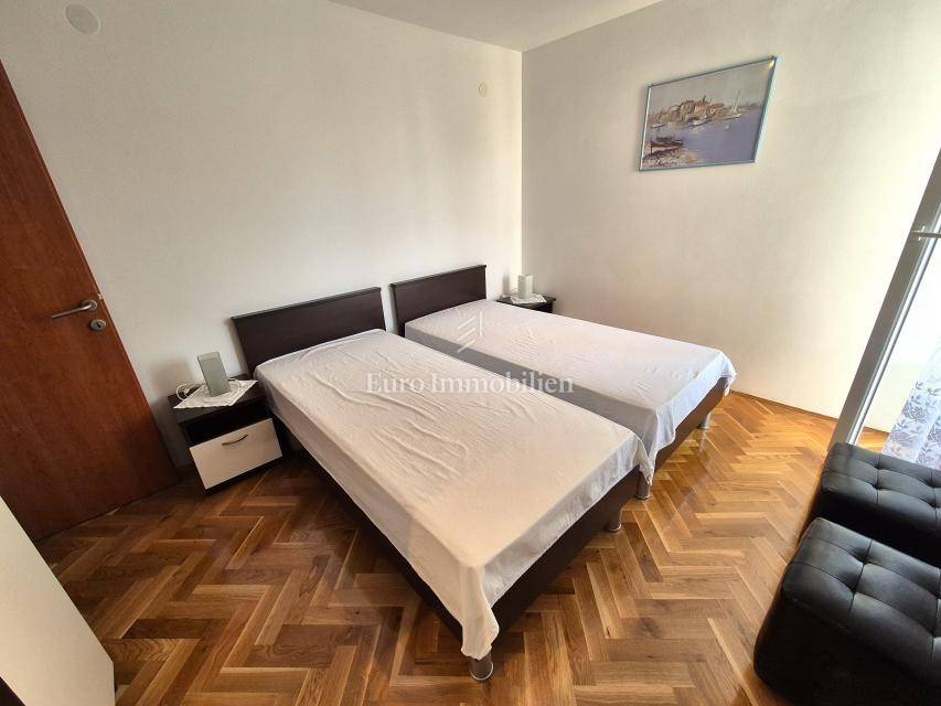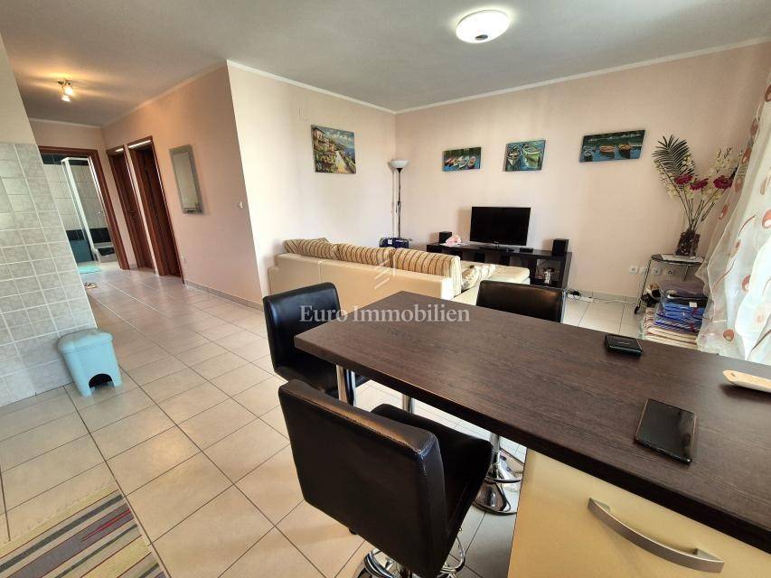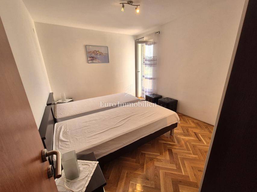 ONLY IN OUR OFFER! Furnished apartment with a large loggia is for sale, located on the first floor of a residential building in Malinska on the island of Krk! The total net area of the apartment is 74.16 m2. The apartment has an excellent layout, it is very comfortable, and consists of an entrance hall, two bedrooms, a kitchen with a living room and dining room, a pantry, a loggia of 14.30 m2 with a view of the sea and a balcony of 2.40 m2. The apartment is furnished and ready for use. It has been used little and the interior is in excellent condition. It has one parking space, and all the documentation is in order. The distance from the sea and the center is about 800 meters.