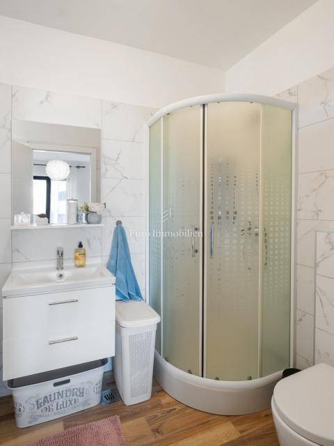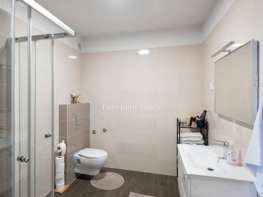 For sale: an end-of-terrace house in Štinjan, Pula, with a view of Brijuni National Park. The total living area is 300 m², situated on a 564 m² plot. The property consists of a main apartment and two additional units, arranged across the basement, ground floor, first and second floors. In total, it offers 6 rooms and 6 bathrooms.