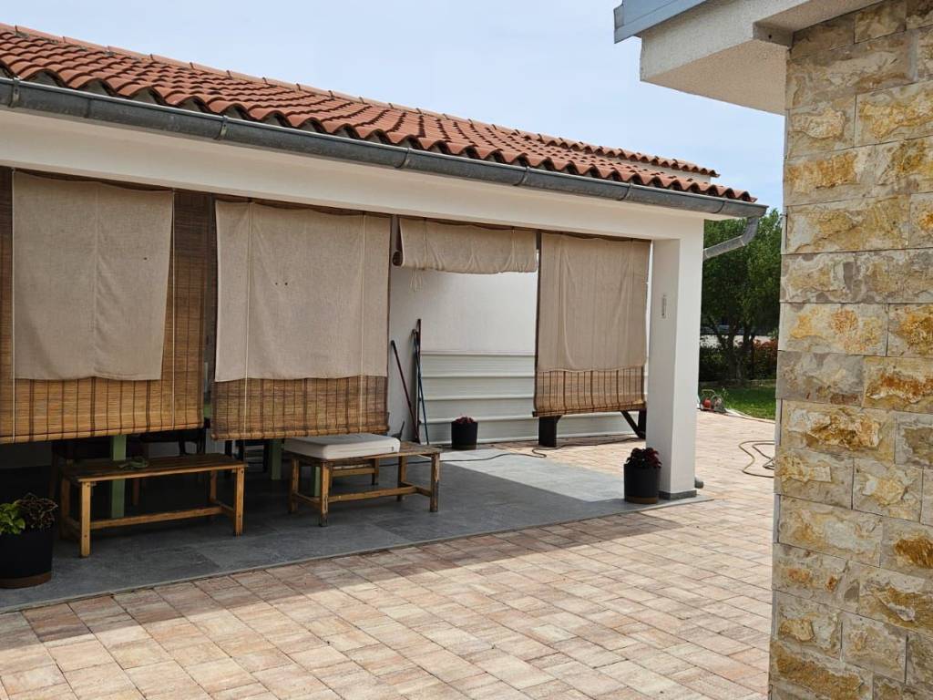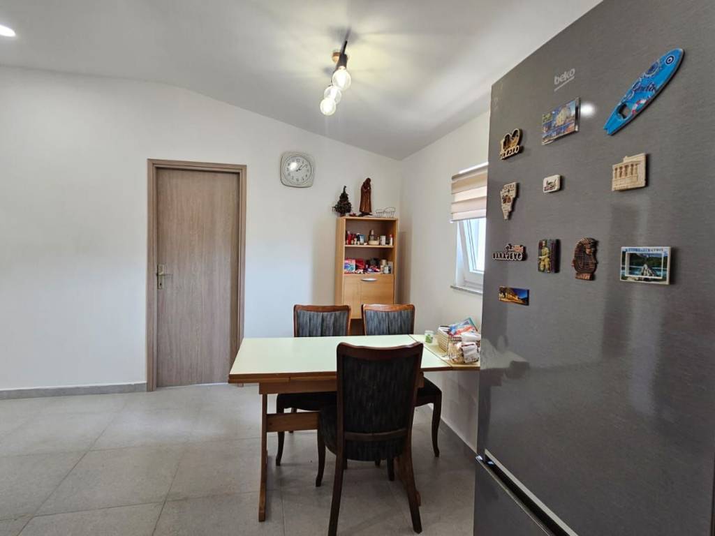 The apartment consists of an entrance hallway, three bedrooms, a bathroom, a living room, a kitchen and dining area, and a large covered terrace that adds extra charm and essence to this house. The property was renovated in 2024, and the yard is still in the final stages of completion. Water and electrical installations are completely new, as are the floors and walls. The 200 m2 yard is paved with cobblestones, as are the boundary walls, which have been completely rebuilt with integrated pleasant nighttime lighting.