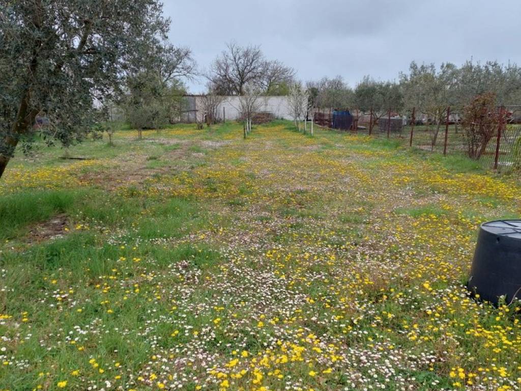 On the large fenced plot of 1104 m2, there is an orchard, an olive grove, some vegetables, and a large green meadow that can also serve as parking for several cars.