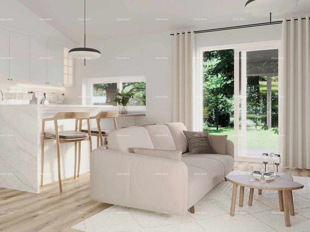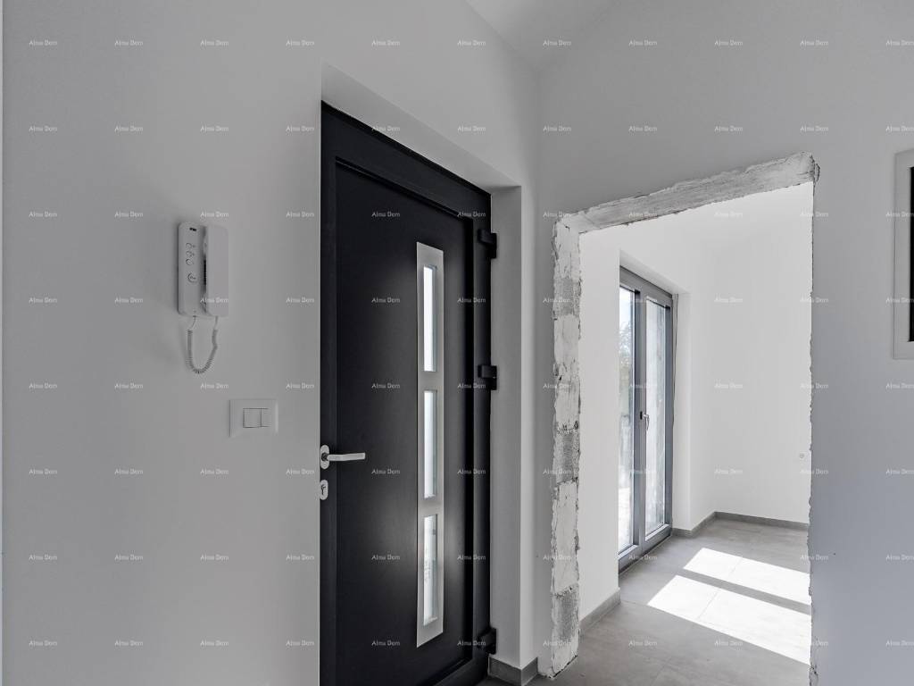 Delivery "turnkey": 01.06.2025. House B: Electric underfloor heating throughout the house. Air conditioning units in each room and the living room. Two bedrooms (one with its own bathroom), an additional bathroom, and a laundry/storage room. Open-concept living room, dining area, and kitchen with access to a terrace and garden. Large glass walls providing plenty of natural light. Chimney in the living room. Floors made of Italian ceramic tiles, custom-made interior woodwork. Exterior PVC joinery with aluminum shutters in anthracite color. Insulated facade with 10 cm Styrofoam. For more information, please contact us: Info: Azra Valjevac +385 91 611 57 06 Contact: Haris Valjevac +385 99 196 2863 E-mail: azra@almadominvest.com