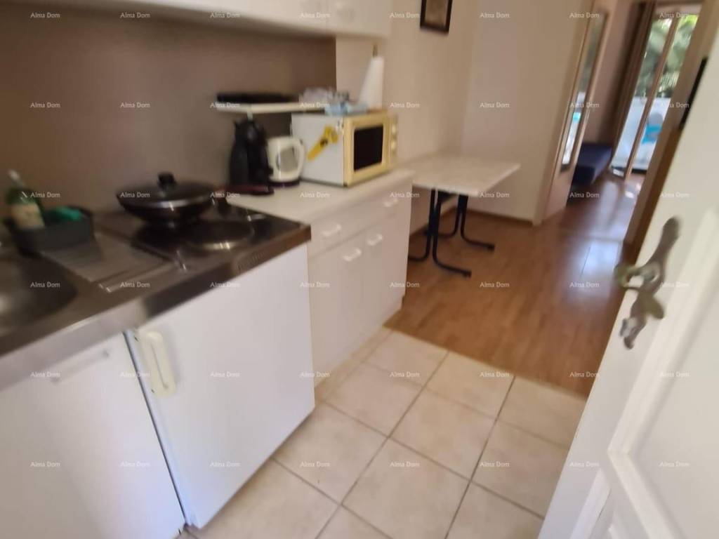 For sale is an apartment of 25.35 m on the ground floor of an apartment building with a swimming pool, located in a quiet part of Medulin, above the very center of the town. The location is ideal for a vacation, but also for tourist rental, because it offers peace and greenery, while at the same time quick access to all amenities.