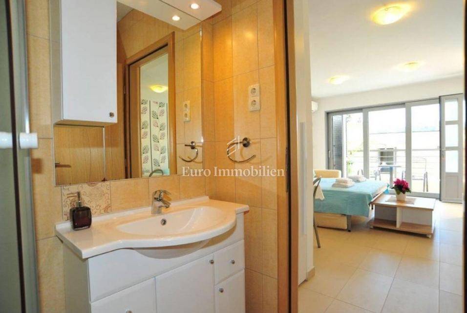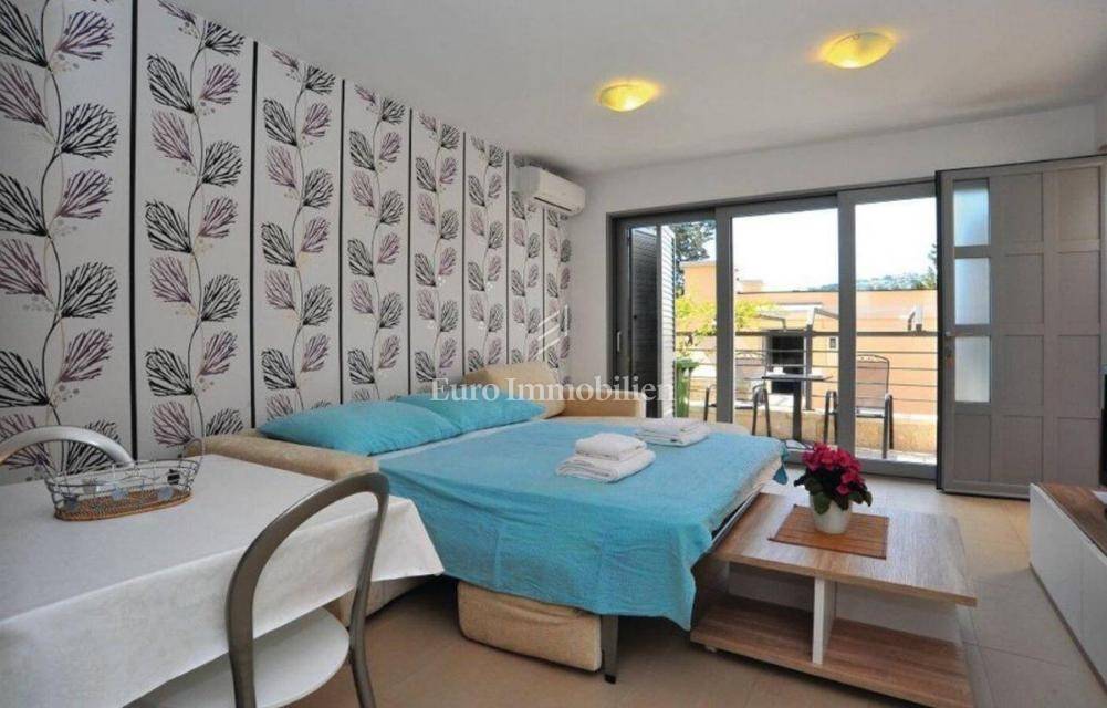 It consists of an auxiliary building, ground floor and first floor. There is a studio apartment in the auxiliary building. The apartment on the ground floor is a studio apartment, while the apartment on the 1st floor consists of a living room, kitchen and dining room, bathroom and bedroom. The house is ready for move in. There is a barbecue and a storage room in the yard. It has one parking space.