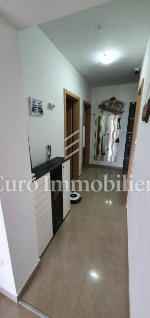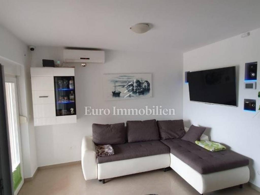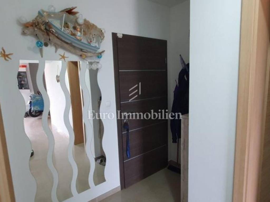 The apartment of 56.96 m2 consists of two bedrooms, a kitchen with a dining room, a bathroom, a living room, a corridor and a terrace with a beautiful view of the sea. There is a private parking space in the garden, as well as a swimming pool and grill that are available for use.