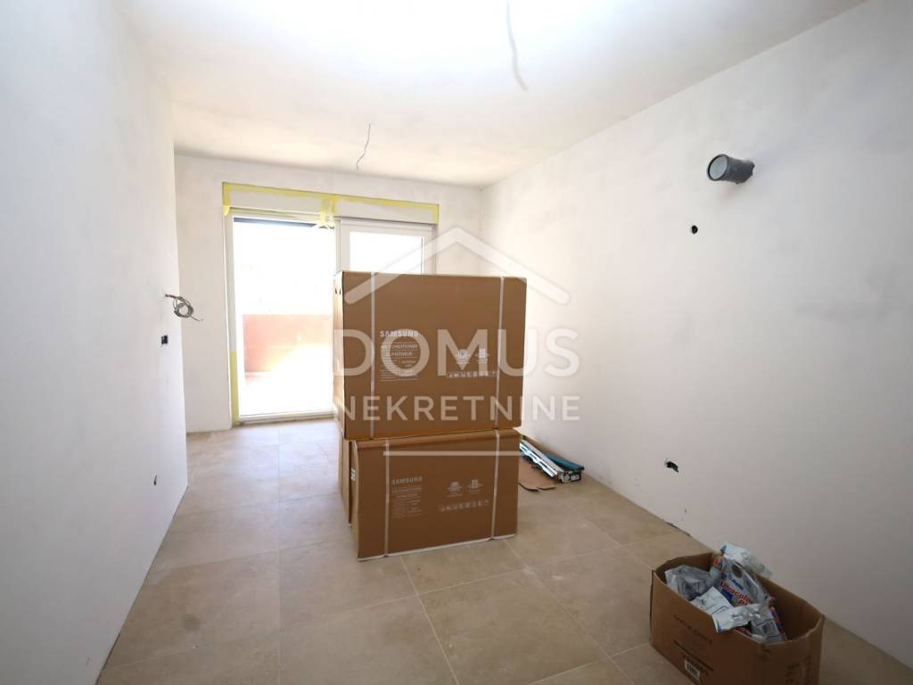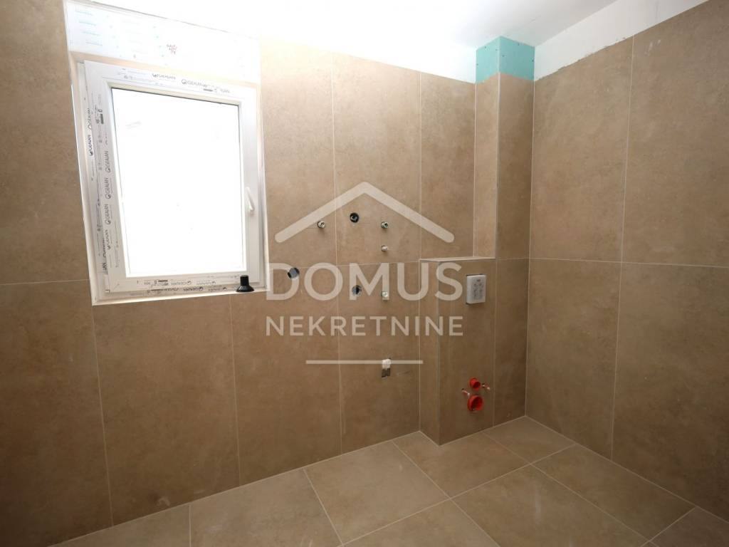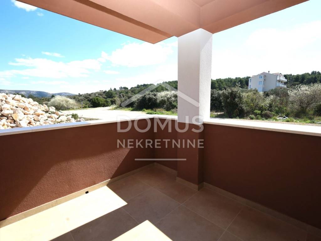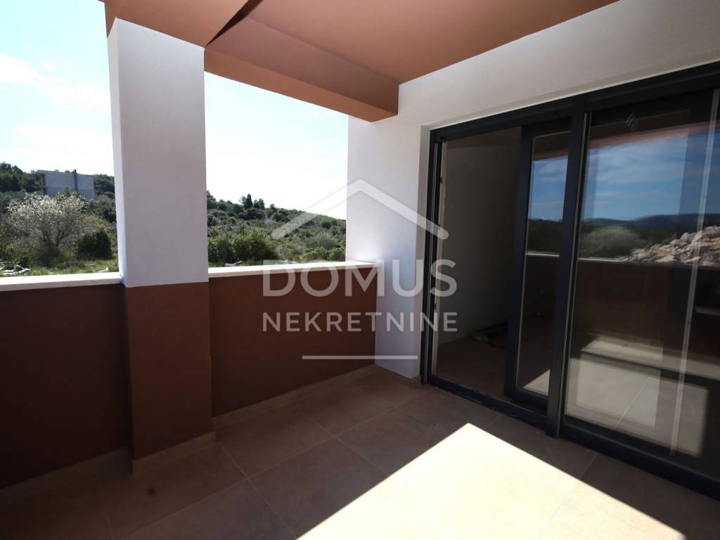 Brodarica, new construction, residential building with 5 units. The building has a total of three floors: ground floor, first floor, and second floor. Modernly designed and equipped with high-quality features: underfloor heating in the bathrooms, air conditioning for heating and cooling in every room, high-quality joinery, windows with electric blinds, insect screens, security doors, and modern bathroom fittings. Expected move-in date: Summer 2026.