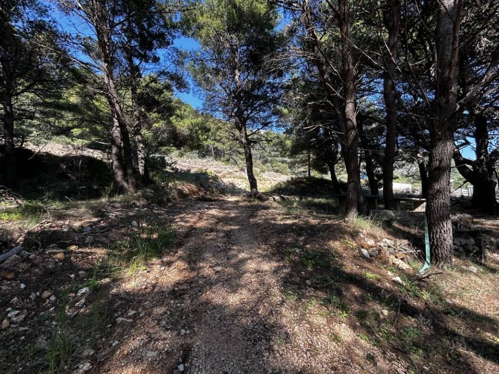 Građevinsko zemljište u T3 zoni, prvi red do mora, površine 1.700 m, s pristupom od ceste do plaže. Teren je prekriven borovom šumom i blagog je nagiba, što ga čini idealnim za mobilne kućice, glamping, bungalove ili klasični kamp.