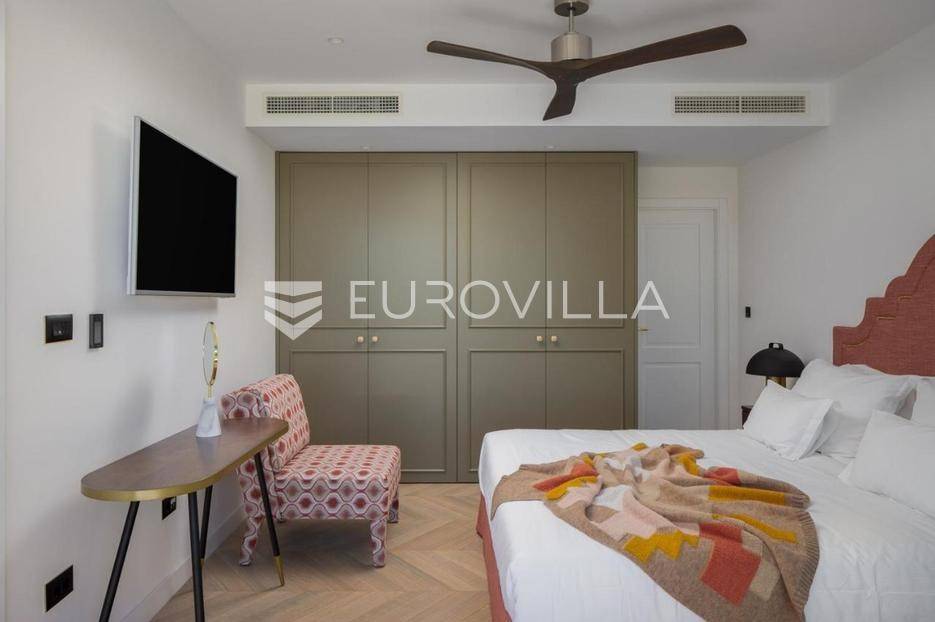 Iznajmljuje se luksuzni trosobni stan u prestižnoj četvrti Meje, Split, samo 250 m od mora. Dizajnerski uređen i renoviran 2022., ovaj stan nudi spoj elegancije, udobnosti i panoramskog pogleda. Idealan za ekskluzivan životni stil, dostupan za najam od 01.10.2026. do 15.05.2027.Stan se prostire na 101 m2 na prvom katu, s tri sobe i dvije kupaonice, pružajući privatnost i komfor. Trostruka orijentacija (sjever, jug, zapad) osigurava obilje prirodnog svjetla. Luksuzni namještaj, prostrani balkon, loggia s pogledom na Jadran i praktična ostava doprinose sofisticiranosti doma.Lokacija na Mejama nudi iznimnu blizinu plaža, Park šume Marjan za rekreaciju te centra Splita s bogatom ponudom, sve nadohvat ruke. Ova nekretnina idealan je izbor za dugoročni zimski najam, pružajući jedinstvenu priliku za doživljaj mediteranskog luksuza i opuštenog života.Za sve ostale informacije, stojimo Vam na raspolaganju.... Više na eurovilla.hr, ID: 329141