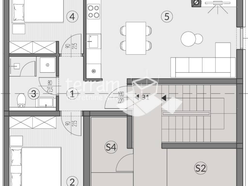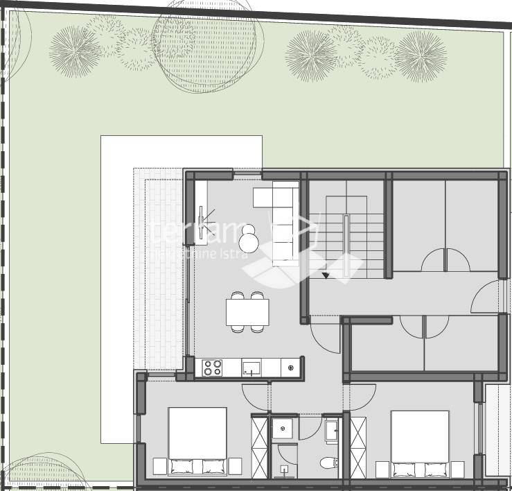 A spacious 2.5-room apartment with an area of 71.76 m2 is for sale, located on the ground floor of a residential building with a total of two floors, in the attractive Valdebek neighborhood in Pula.