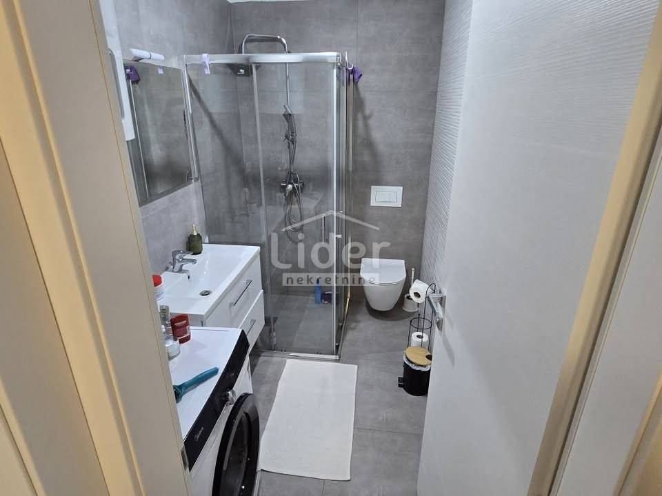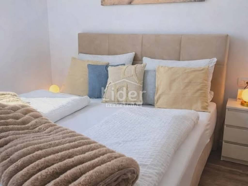 VIŠKOVO (SARŠONI) Apartment in a newly built building, 51 m², with a 33 m² garden. The apartment comprises a living room with kitchen and dining area, two bedrooms, and a bathroom with underfloor heating. The price includes one parking space and a storage room. This attractive apartment is sold fully furnished and requires no additional work. Extremely quiet surroundings.