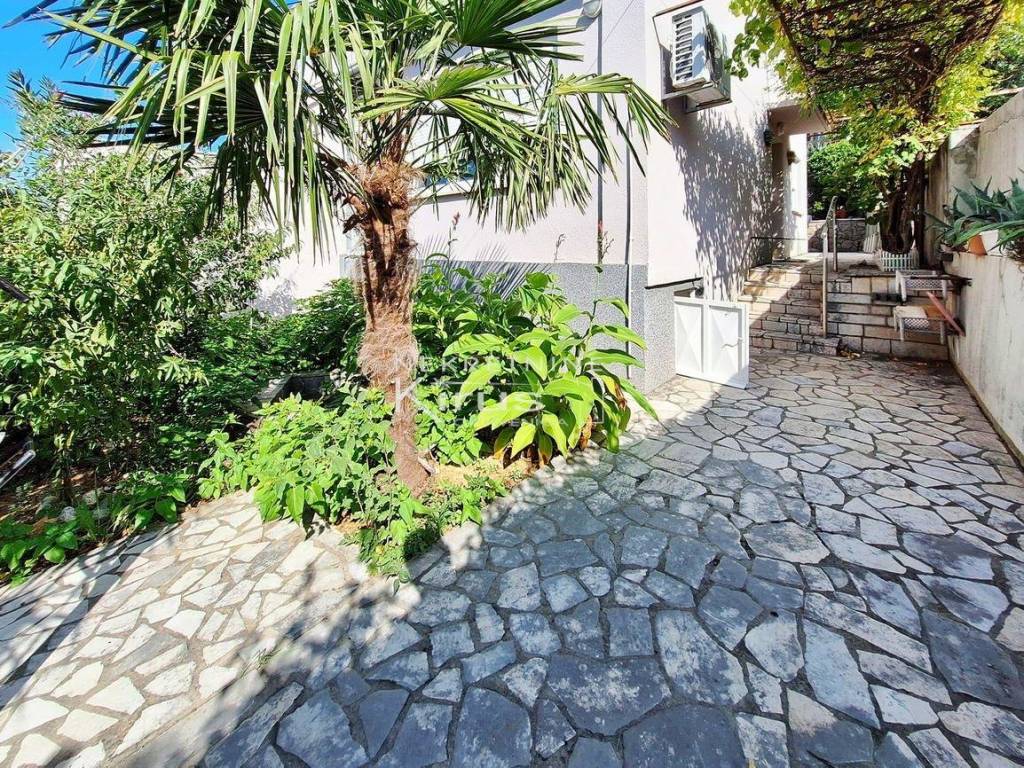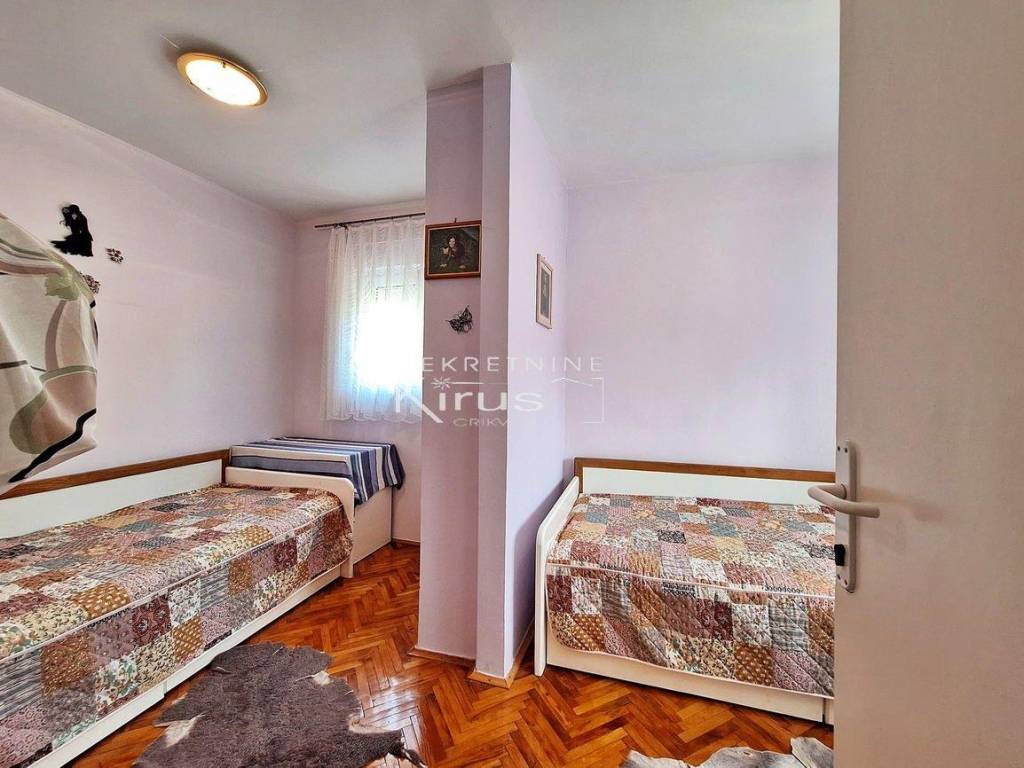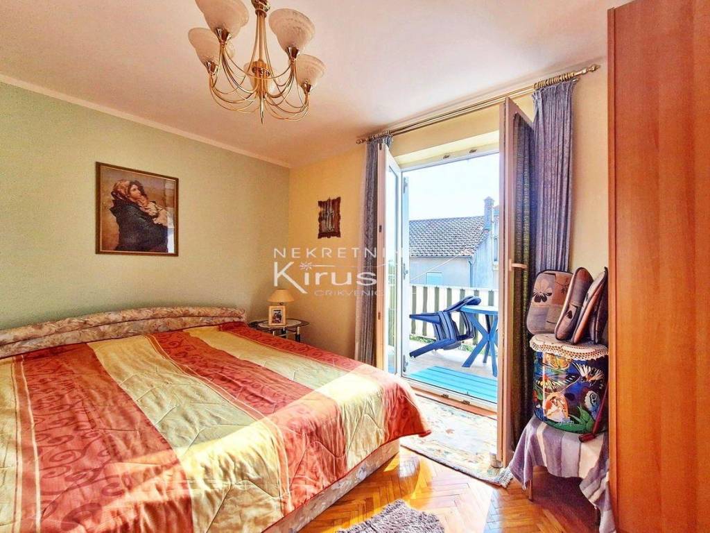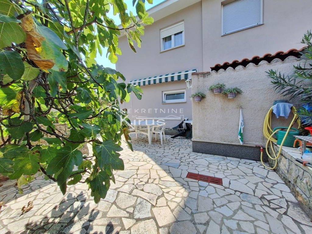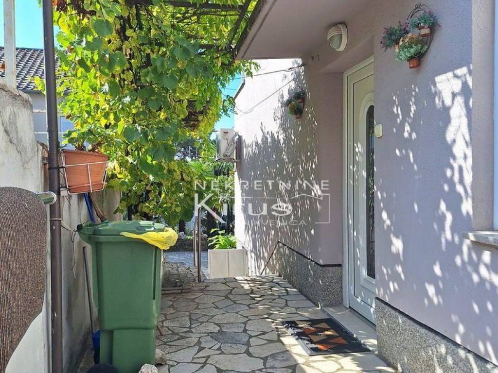Single family house in a great location. On the ground floor there is a living room with a kitchen, dining room and bathroom, while on the first floor there are two bedrooms. The house has a nice intimate yard and two parking spaces. The southern orientation ensures peace and a beautiful view of the sea. A few minutes' walk to the city center and all facilities, as well as to the beach. It is sold completely furnished and equipped, immediately ready for use.