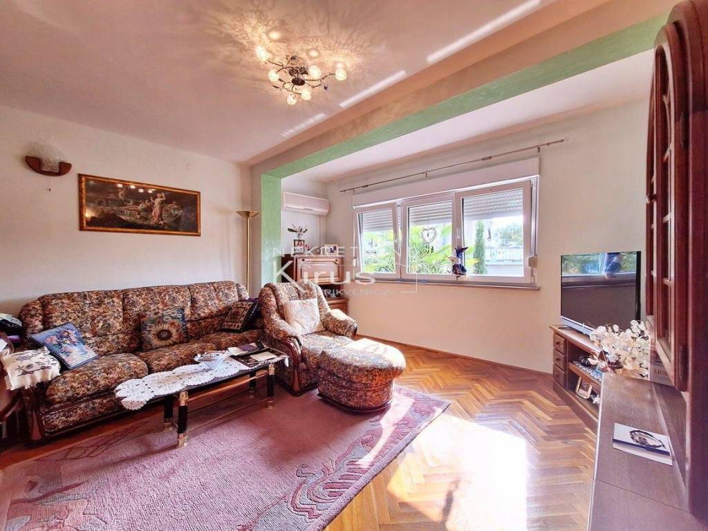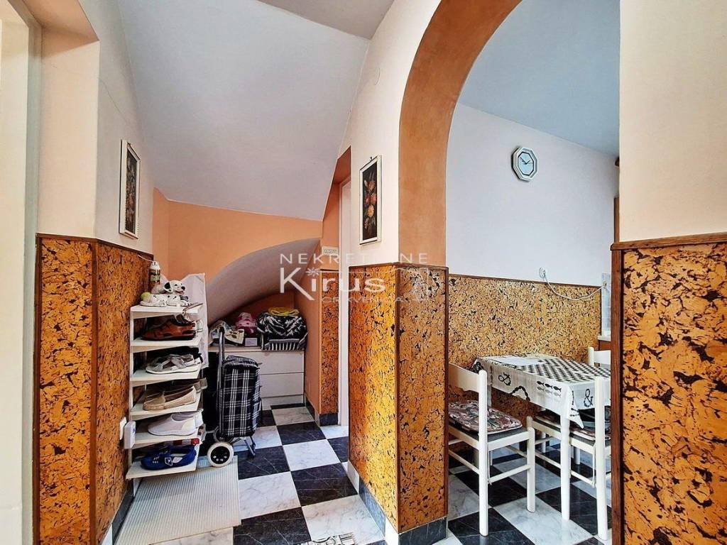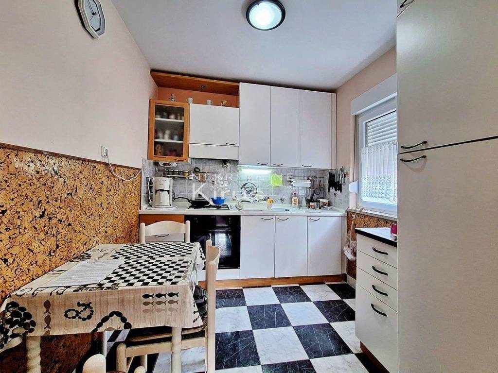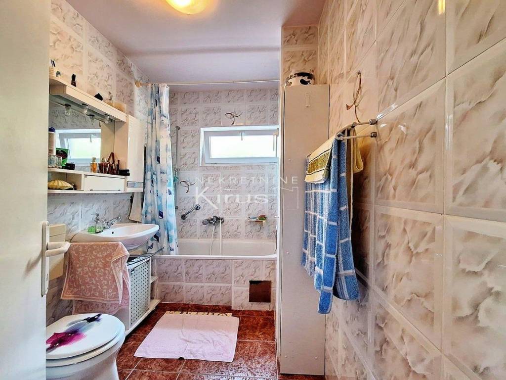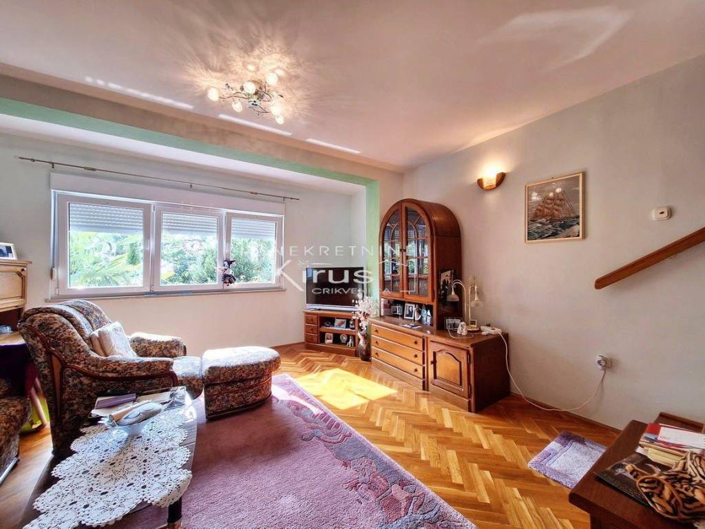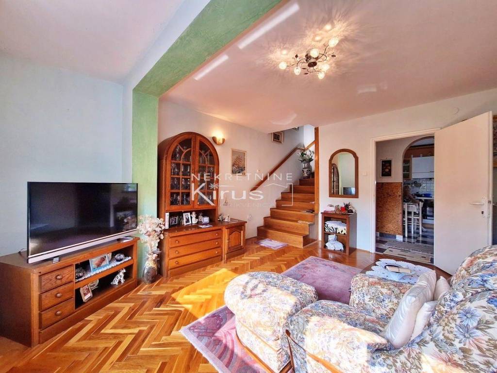 Single family house in a great location. On the ground floor there is a living room with a kitchen, dining room and bathroom, while on the first floor there are two bedrooms. The house has a nice intimate yard and two parking spaces. The southern orientation ensures peace and a beautiful view of the sea. A few minutes' walk to the city center and all facilities, as well as to the beach. It is sold completely furnished and equipped, immediately ready for use.