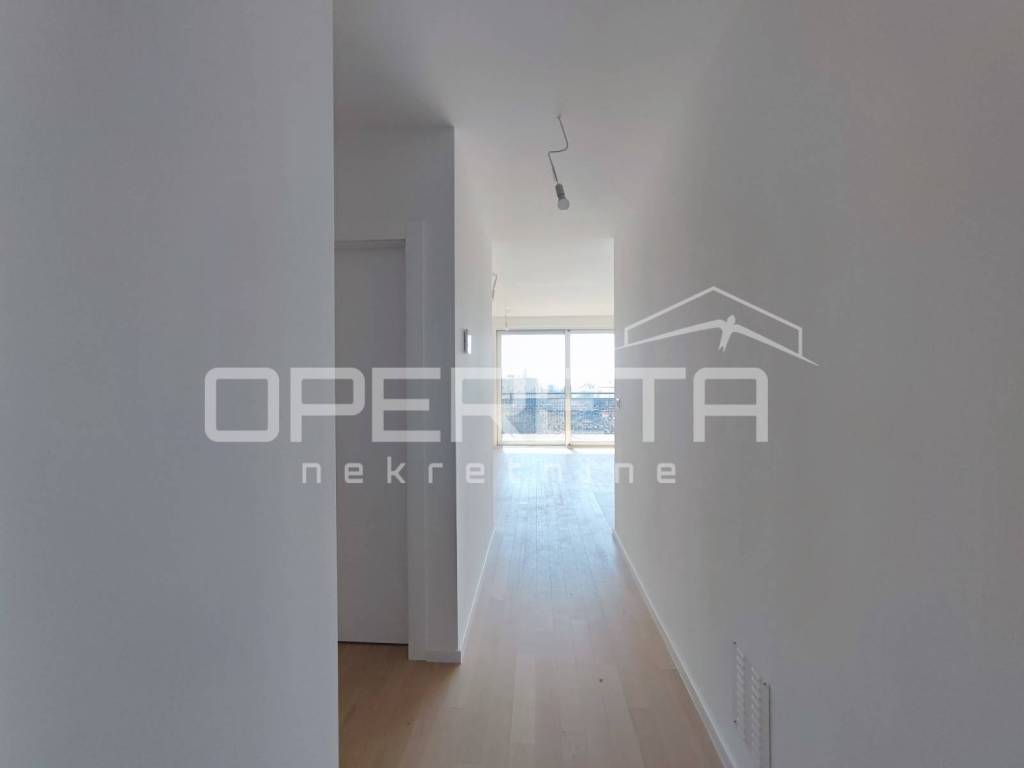 The apartment has not been used so far. It consists of a hallway, a common area of the living room and kitchen with a loggia, a bathroom, a separate toilet, and three bedrooms, of which the master bedroom has its own bathroom.