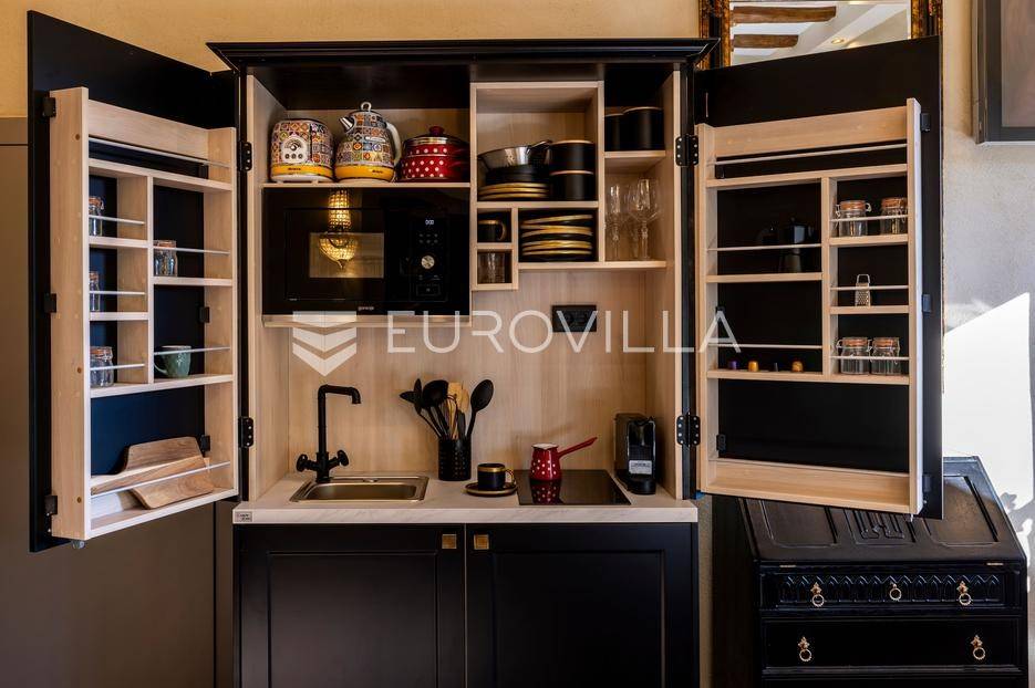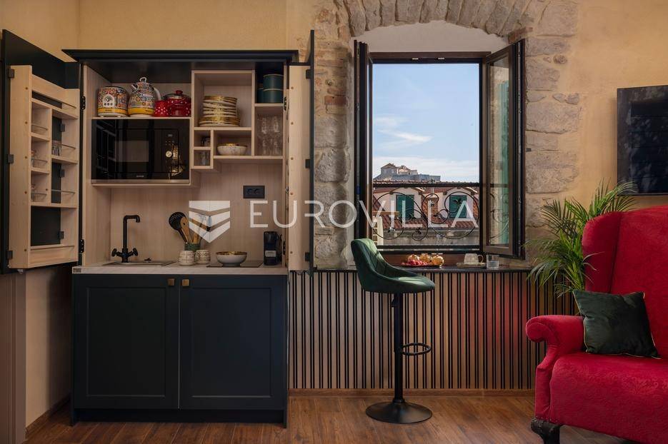 Vrhunski osmišljena i potpuno renovirana nekretnina, smještena na 2. katu, ukupne površine 51,70 m², podijeljena u dvije šarmantne apartmanske jedinice. Ova jedinstvena prilika spaja sofisticirani dizajn i iznimnu investicijsku vrijednost. Svaki detalj prostora promišljen je za estetiku, funkcionalnost i privatnost gostiju. Obje jedinice odišu elegancijom i komforom, s vlastitom modernom kupaonicom, kvalitetnim krevetom i pomoćnim ležajem. Diskretno integrirane kuhinje, skrivene unutar ormara, doprinose minimalističkom dojmu bez kompromisa po pitanju praktičnosti. Interijer spaja suvremeni luksuz i klasične elemente, stvarajući atmosferu topline, stila i autentičnosti.Izvrsna mikrolokacija naglašava ekskluzivnost. Smještena u prestižnom području Pile, na samom ulazu u povijesnu jezgru Dubrovnika, nudi neusporediv pristup svim čarima grada. Nekoliko minuta šetnje vodi do Plaže Šulić, dok su vrhunski restorani, elegantni barovi i šarmantni kafić na dohvat ruke, pružajući nezaboravno iskustvo mediteranskog načina života.Pile, kao simbol spoja bogate povijesti i živopisnog gradskog života, garantiraju trajnu atraktivnost i sigurnost ulaganja. Ova nekretnina nudi rijetku priliku posjedovanja dijela jednog od najljepših gradova svijeta, predstavljajući pametnu investiciju s visokim potencijalom povrata kroz turistički najam ili osobno uživanje.Kontaktirajte nas za više informacija ili dogovor oko obilaska.... Više na eurovilla.hr, ID: 445760