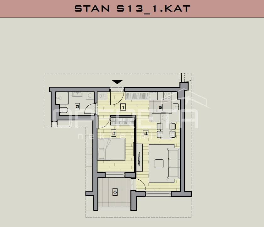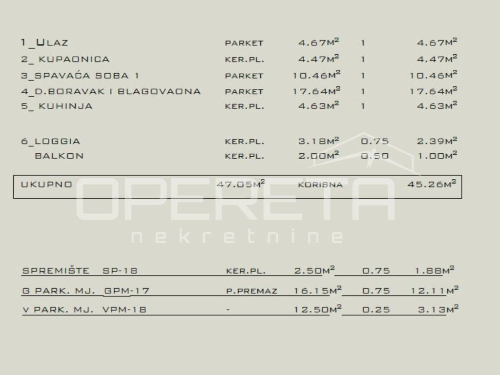 Stan: 47,05 m2 bruto (45,26 m2 neto)