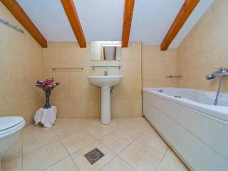 Vila ima 9 dvokrevetnih soba tako da u njoj može boraviti grupa od čak 18 osoba. Budući da neke spavaće sobe imaju i mini kuhinju, a postoji mnogo terasa i dvorišta koja pružaju privatnost, ovo bi moglo biti korisno za opušten odmor bez stresa za velike grupe. Postoji nekoliko dobrih restorana i pizzerija unutar nekoliko minuta hoda od vile. Selo je također u blizini malog supermarketa, pekare, pošte i banke. Prekrasne staze uz obalu pogodne su za šetnju i vožnju biciklom. SMJEŠTAJ Prizemlje Ovaj kat sadrži jednu dvokrevetnu sobu i kupaonicu. Osim toga, tu je i samostalni jednosobni apartman s bračnim krevetom, prostorom za sjedenje, mini kuhinjom i kupaonicom s jacuzzijem. Francuski prozor iz dnevnog boravka izlazi na terasu s bazenom. U prizemlju se nalazi i dobro opremljena teretana/soba za igre. Prvi kat Ovaj kat sadrži veliku otvorenu kuhinju/dnevni boravak koji izlazi na natkrivenu terasu. U dnevnom boravku može sjediti 10-12 osoba s dodatnim sjedećim mjestima za 10 osoba na terasi, a cjelina se spaja u jedinstveni unutarnji i vanjski prostor s prekrasnim pogledom na more. Dnevni boravak je opremljen satelitskom TV, DVD playerom, glazbenim centrom i bežičnim internetom. Otvorena kuhinja opremljena je štednjakom, hladnjakom sa zamrzivačem, mikrovalnom pećnicom, kuhalom za vodu, tosterom, priborom za kuhanje, posuđem i priborom za jelo. Za blagovaonskim stolom može sjediti 10 osoba, a za veće grupe može se postaviti još jedan stol u kuhinji/blagovaonici. Osim toga, druga, vanjska natkrivena terasa također ima prostor za sjedenje za 18 osoba, a obično u ljetnim mjesecima tu gosti najradije jedu. Na raspolaganju je vanjski kameni roštilj. Drugi kat Na ovom katu su tri spavaće sobe: jedna dvokrevetna soba s vlastitom kupaonicom, jedna dvokrevetna soba s vlastitom kupaonicom i još jedna dvokrevetna soba s vlastitom kupaonicom i mini kuhinjom, sve klimatizirane. Dvije od ovih spavaćih soba imaju izlaz na veliki balkon s prekrasnim pogledom na more. Treći kat Jedna dvokrevetna spavaća soba s vlastitom kupaonicom i mini kuhinjom te jedna dvokrevetna soba s vlastitom kupaonicom i kupaonicom, sve klimatizirano. Okučnica Uz bazen je odvojena ljetna kuhinja s tuš/WC. Glavni dio vrta sastoji se od kamenom popločanog sunčališta oko bazena, s lončanicama, maslinama i palmama te ležaljkama s ručnicima. Staze vode do lisnatih i zasjenjenih dijelova vrta, a iz vrta se može doći do natkrivene terase, koja se također može koristiti za opuštanje ili jelo na otvorenom. U sklopu vile postoji parking za do pet automobila Za razgled ovog objekta nazovite: +385989322461 (Whats up/ Viber) Vlasnik agencije Mario Marević Agencija Get Home Šifra objekta: 480
