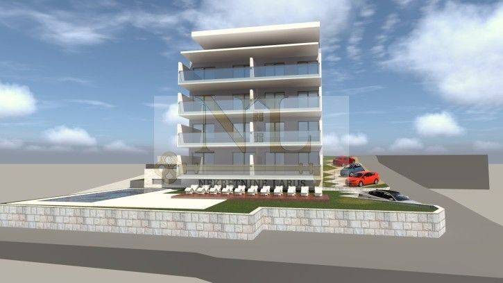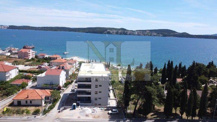 Prodaje se apartman visoko prizemlje novogradnje jugo istočne orijentacije, na odličnoj lokaciji 100 metara od mora i plaže. Zgrada ima lift, zajednički bazen i mogućnost kupnje mjesta u garaži. Površina apartmana iznosi 78 m2 te se sastoji od hodnika, dvije spavaće sobe, dvije kupaonice, open space dnevnog boravka sa kuhinjom i blagovaonicom, spremišta i velike natkrivene terase sa pogledom na more. Površine: apartman 70 m2 + natkrivena terasa 18 m2 Stanu pripada jedno vanjsko parkirališno mjesto. Dodatno ako želite garaža košta 15 000 EUR. Tlocrt stana S3.