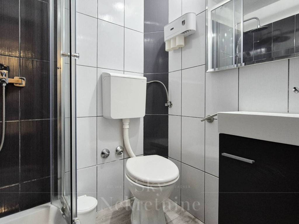The property spans 50 m², divided into two separate open-plan apartments. One is situated on the ground floor, while the other occupies the first floor, connected by an external staircase. Each apartment features a modern kitchen and a bathroom with a shower. The property also includes a storage room.