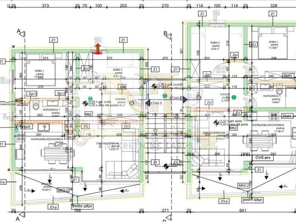 Penthouse S6 with roof terrace, 300 m from the sea, Okrug Gornji We are selling a penthouse apartment with a roof terrace S6 on the second floor of a residential building under construction in Okrug Gornji, the island of Ciovo. The building is located 300 meters from the sea and the beach, and has 6 apartments and 4 garage parking spaces and 2 outdoor parking spaces. Apartment S6 penthouse with roof terrace, the second floor consists of a hallway, two bedrooms, a bathroom, a living room with a kitchen and a dining room, as well as a balcony and an associated roof terrace. The total interior area of the apartment is 55 m2, and the balcony is 10 m2. The area of the roof terrace is 65 m2. It is necessary to buy a garage parking space with the apartment at a price of 20,000 euros. The construction of the building is scheduled to be completed by the end of 2024. Apartment prices: - S 1 ground floor EUR 230,000 - S 2 ground floor EUR 230,000 - S 3 first floor EUR 230,000 - S 4 first floor EUR 230,000 - S 5 penthouse with roof terrace EUR 370,000 - S 6 penthouses with a roof terrace EUR 370,000