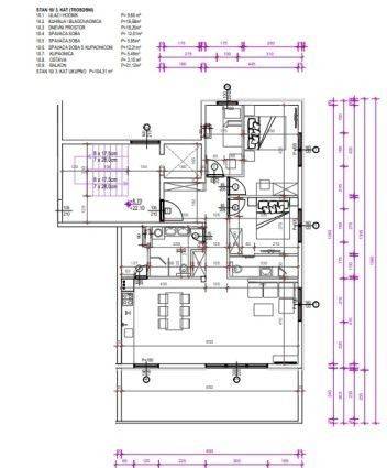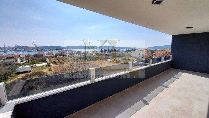 Trosobni stan na trećem novogradnje 104 m2 u Segetu Donjem, udaljen 1 km od centra Trogira. Zgrada ima lift i zajednički bazen. Stan se sastoji od: ulaza i hodnika (9,60 m2), kuhinja i blagavaonica (16,58 m2), dnevni boravak (18,25 m2), spavaća soba (12,01 m2), spavaća soba s kupatilom ( 12,21 m2 ), spavaća soba( 5,95 m2) kupaonica(5,49m2), ostava (3,1 m2) i veliki balkon (21,12 m2 ). Opreme: PVC stolarija s 3 stakla i roletama na motore, keramika i sanitarije 1.klase, vrhunska ulazna i sobna vrata, TV i internet u svakoj sobi, podno grijanje, klima ... Stan ima jedno parking mjesto. Zgrada je dovršena i stan je spreman za useljenje. Pogodan i za najam u turizmu.
