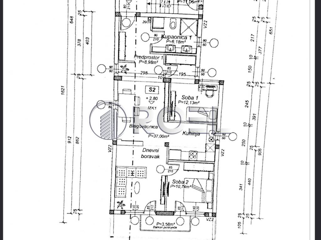 1st floor with an area of 79.61 m2 consisting of an entrance hall, bathroom, living room with kitchen, dining room, two bedrooms and a balcony.