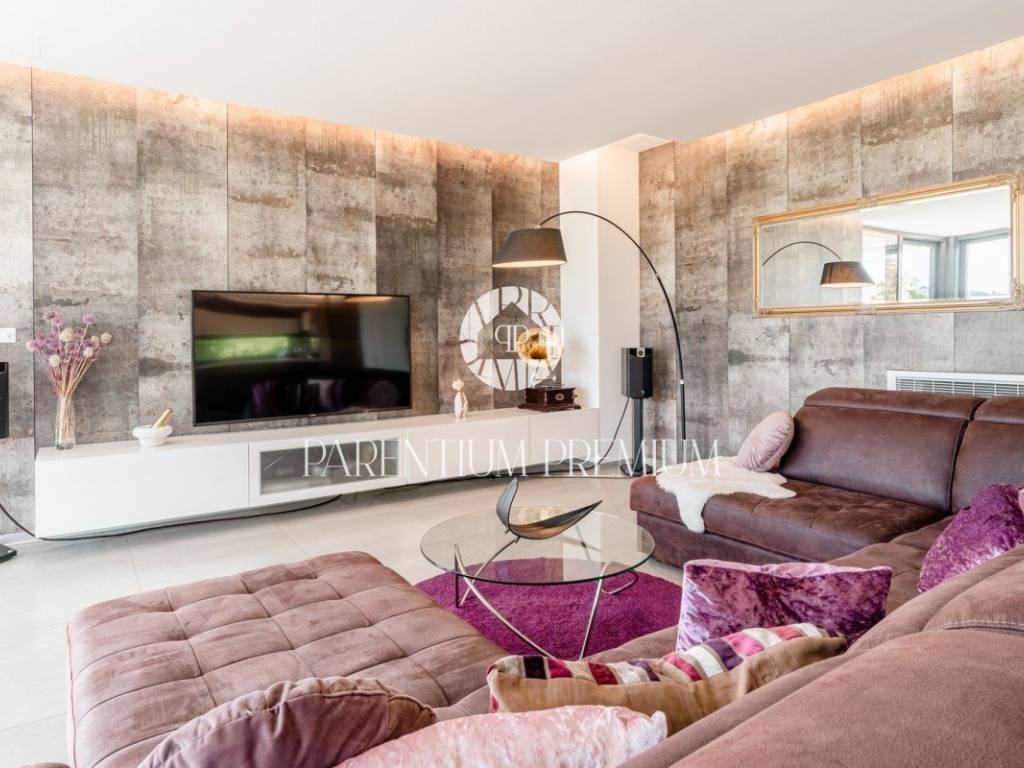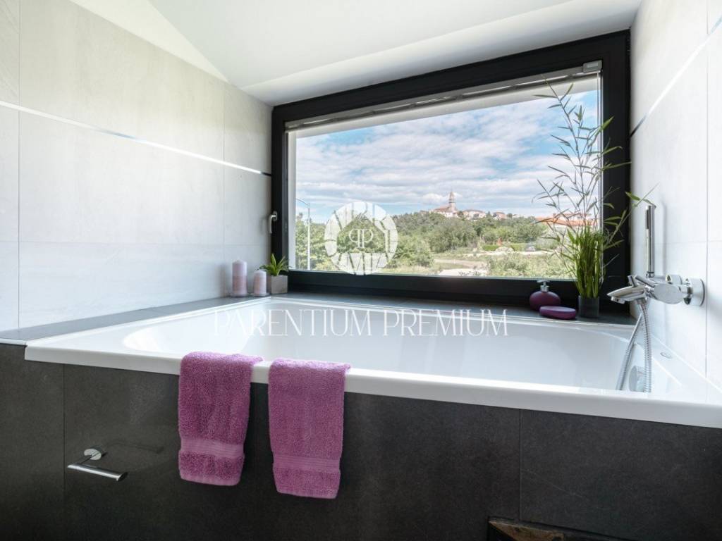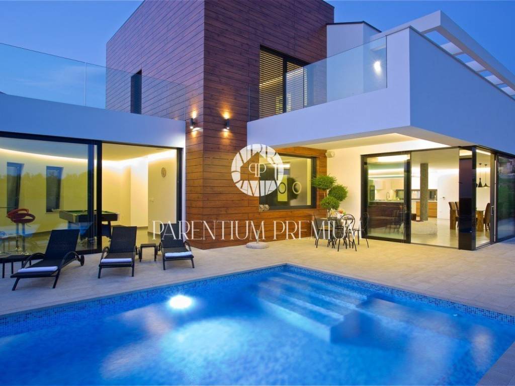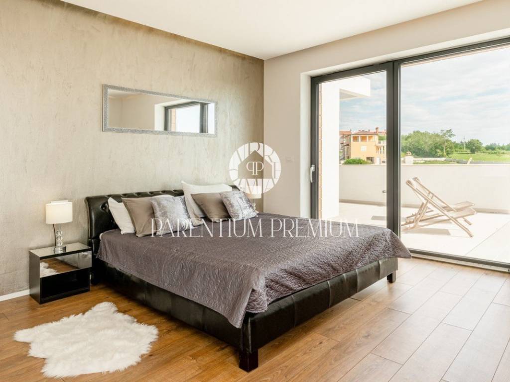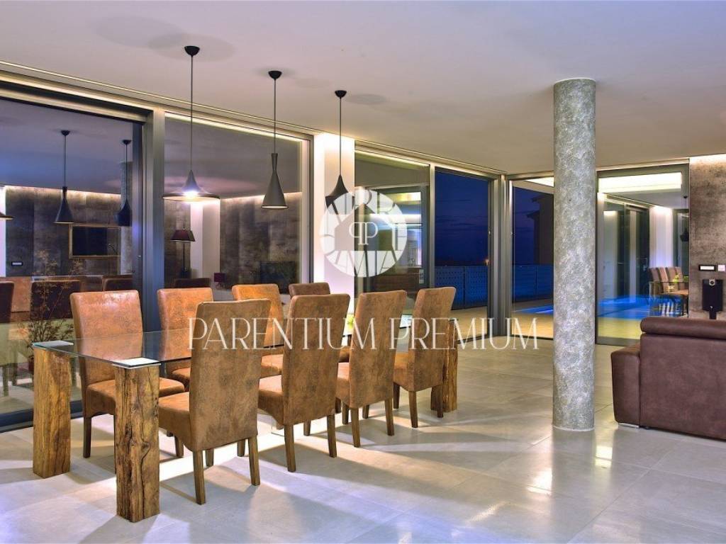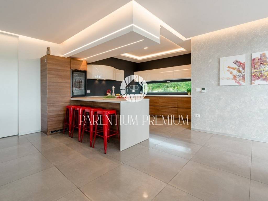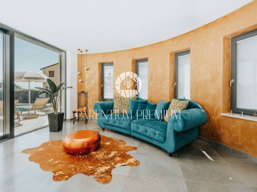 In the vicinity of the city of Porec, in a place with all amenities such as shops, post office, bank, school, kindergarten, etc .., is located this luxury villa of modern design with a living area of 217m2 and land of 410m2.