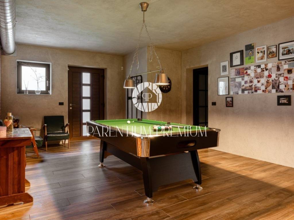 In the basement of the villa there is a boiler room, toilet, 2 pantries, a tavern with a pool table, kitchen and wine cellar.