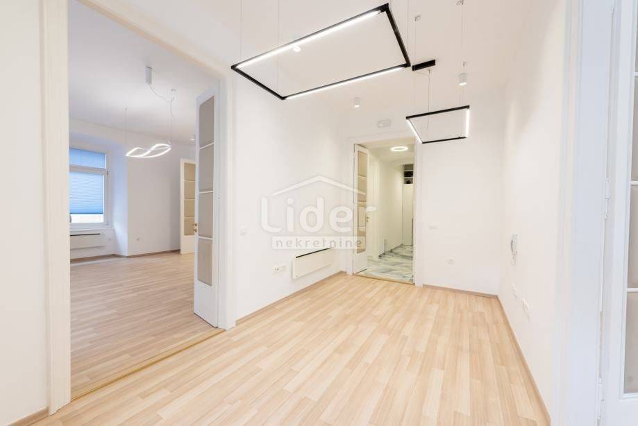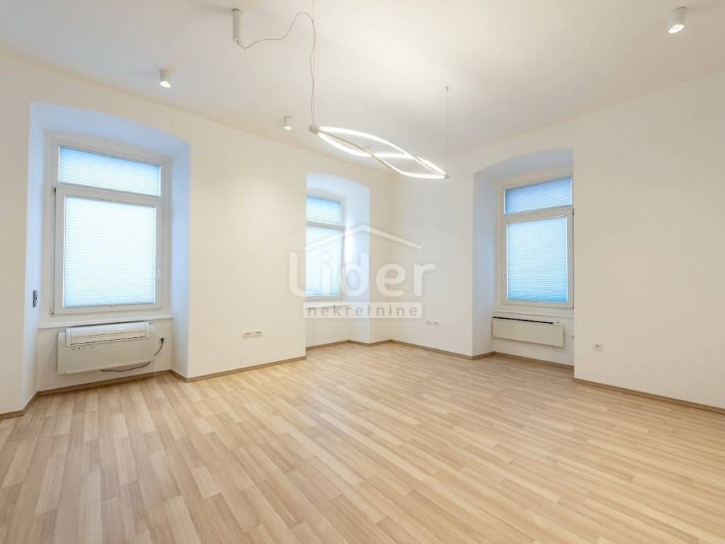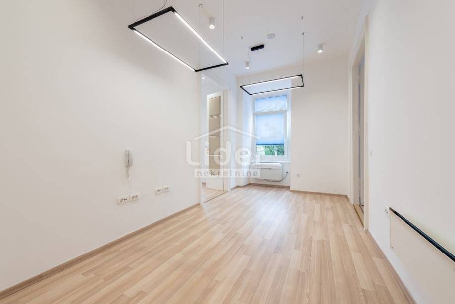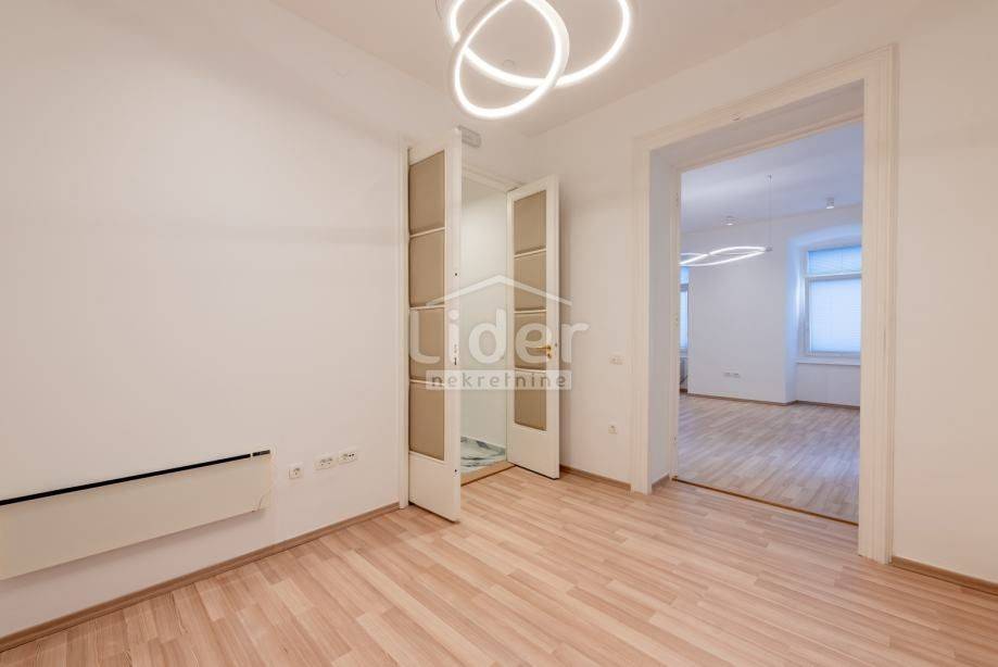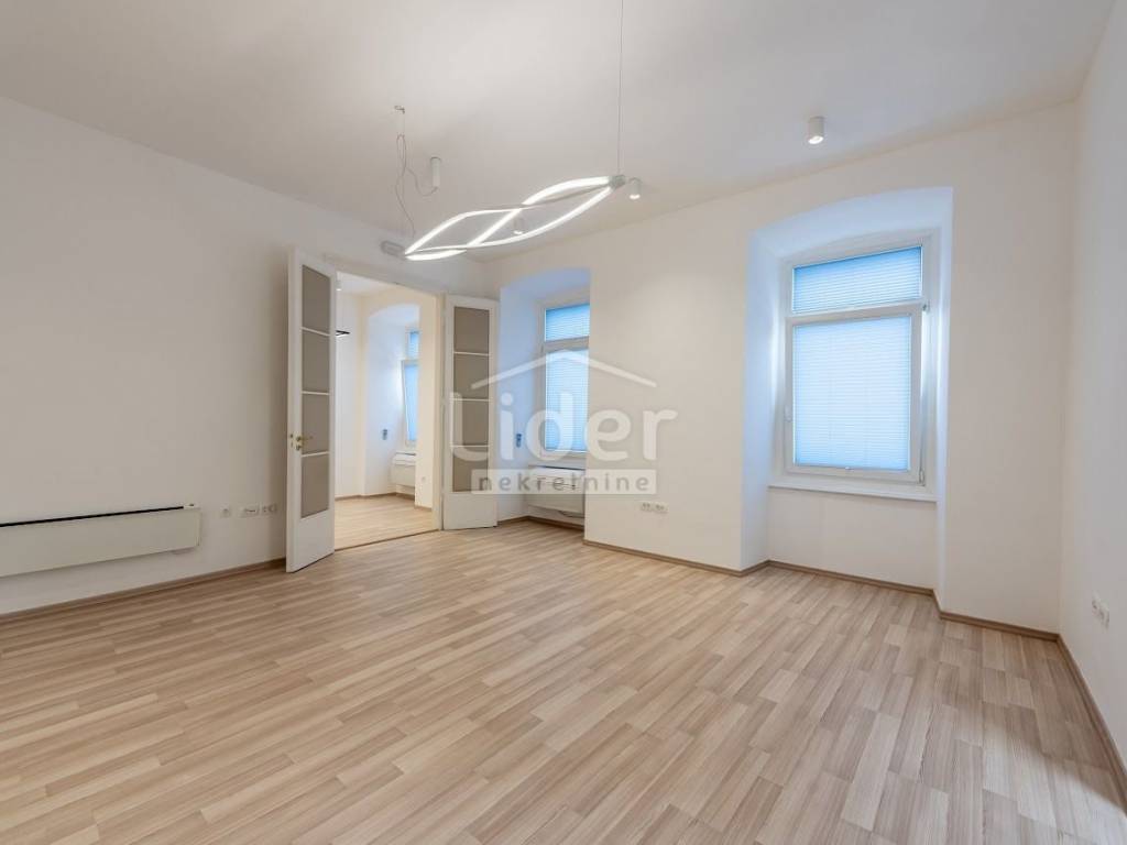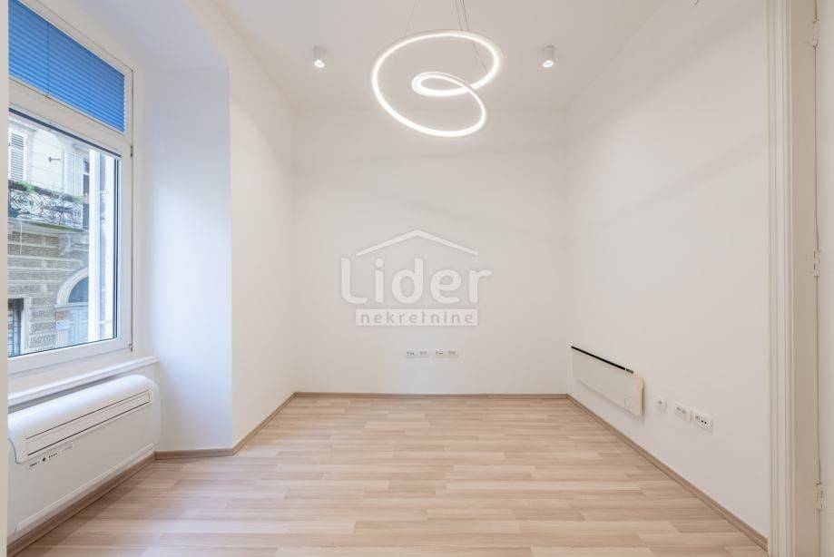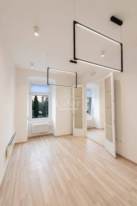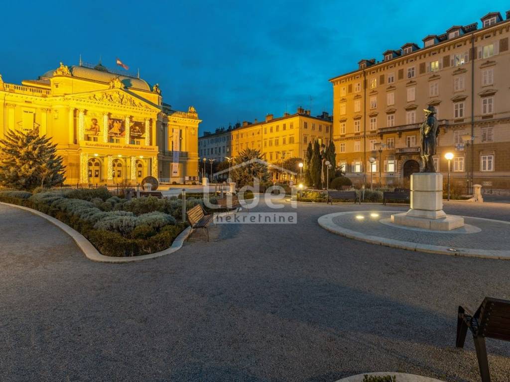 Centar, iznajmljuje se ekskluzivan poslovni prostor veličine 87.02 m² u očuvanoj austrougarskoj zgradi, smještenoj u blizini HNK Ivan pl. Zajc. Prostor krase visoki stropovi, obilje prirodne svjetlosti i pogled na kazališni trg, kazalište i novouređenu fontanu, što mu daje poseban prestiž.