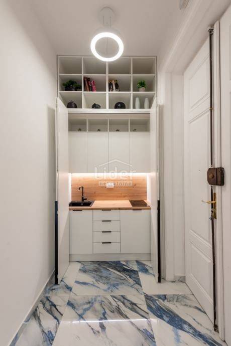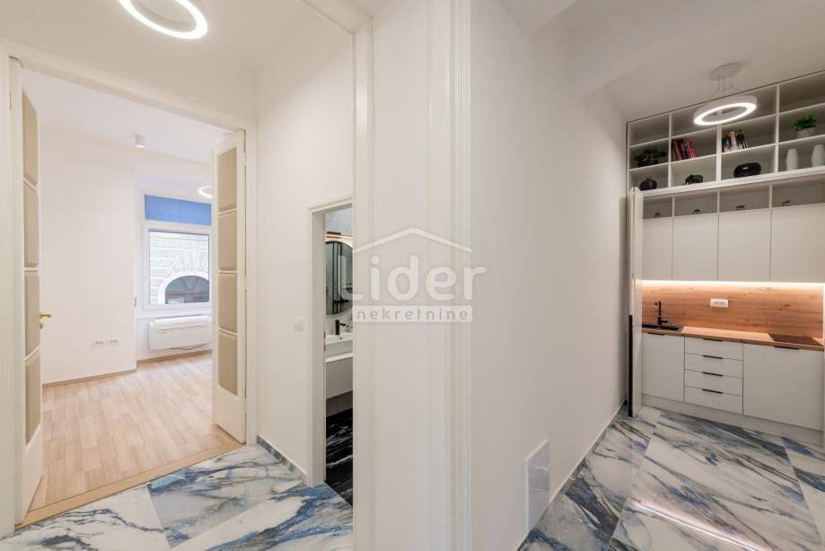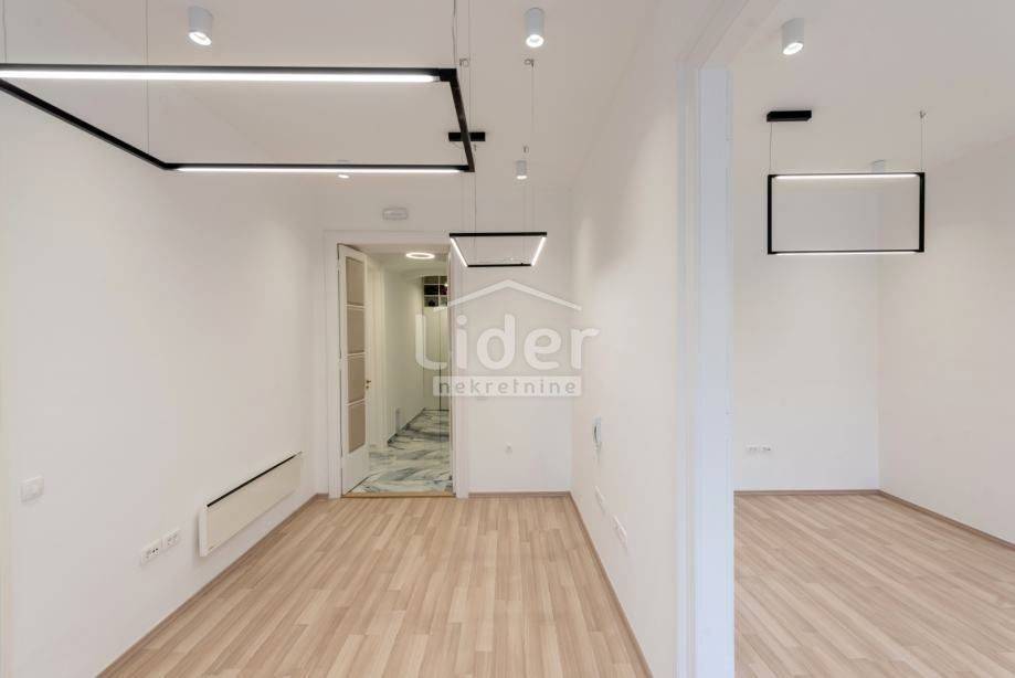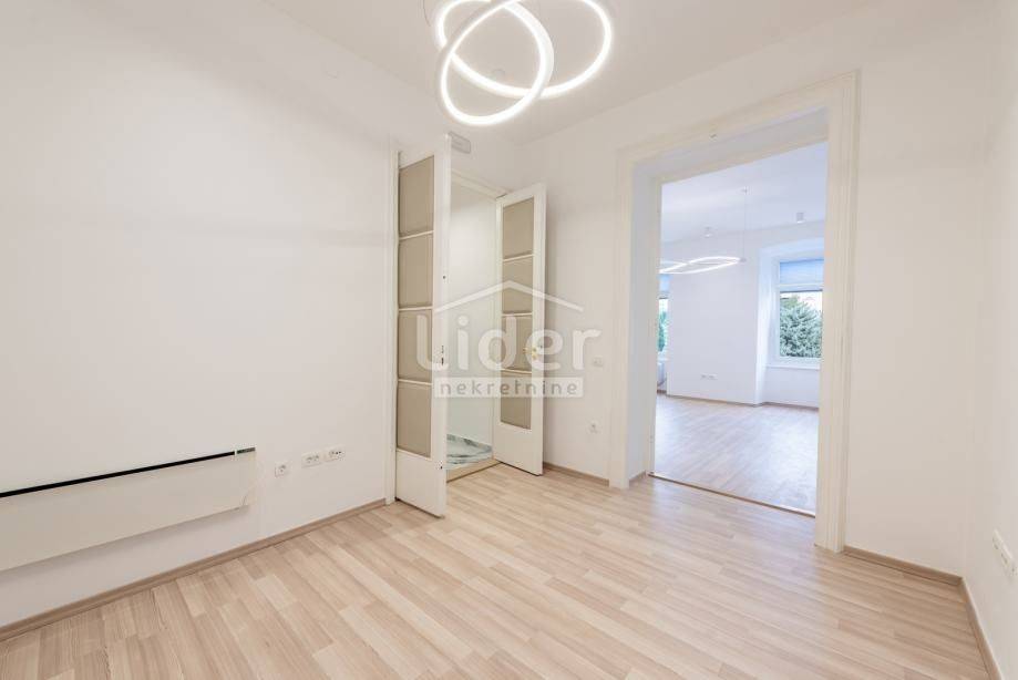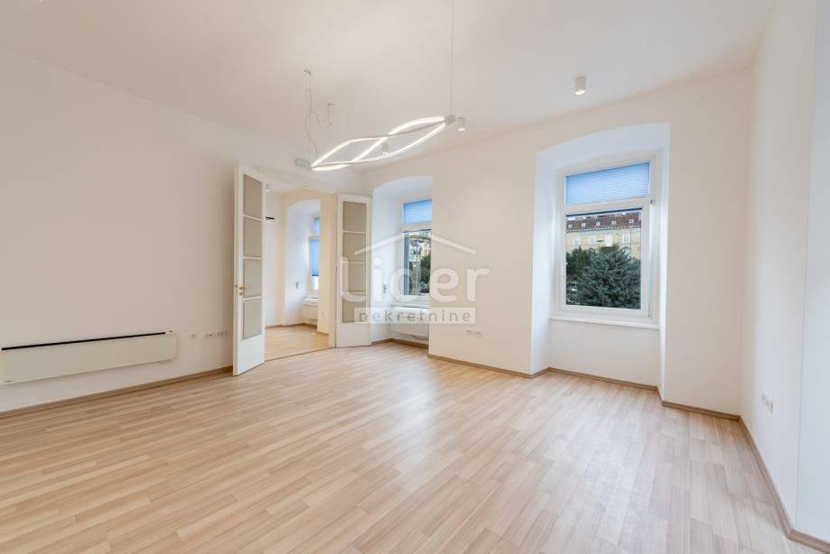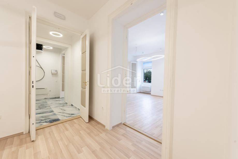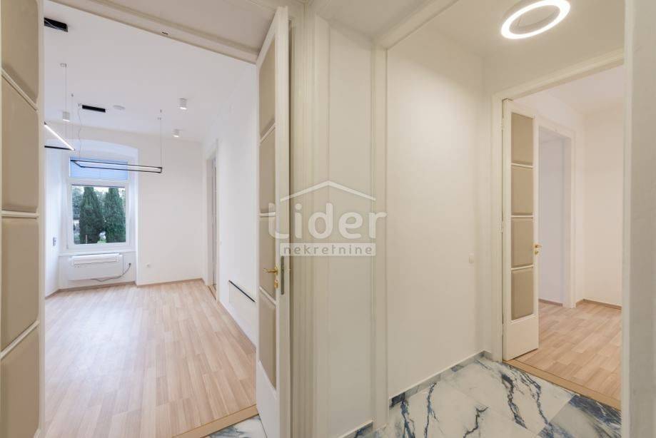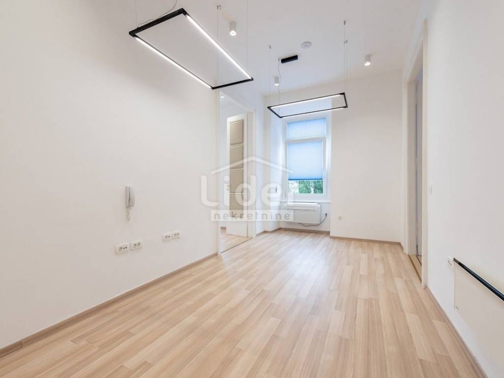 Centar, iznajmljuje se ekskluzivan poslovni prostor veličine 87.02 m² u očuvanoj austrougarskoj zgradi, smještenoj u blizini HNK Ivan pl. Zajc. Prostor krase visoki stropovi, obilje prirodne svjetlosti i pogled na kazališni trg, kazalište i novouređenu fontanu, što mu daje poseban prestiž.