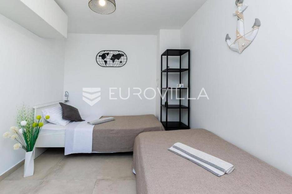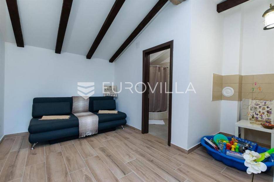 U jednom od najljepših dijelova otoka Raba, u Loparu poznatom po pješčanim plažama i prirodnim ljepotama, smještena je ova elegantna i moderno uređena kuća, idealna za odmor ili turistički najam.Kuća nudi prostran i ugodan dnevni prostor opremljen suvremenim namještajem, potpuno opremljene tri kuhinje te tri komforne spavaće sobe i tri kupaonice. Interijer je pažljivo uređen s ciljem stvaranja toplog i domaćeg ambijenta, uz dodatne sadržaje poput velikog TV-a, satelitske i kabelske televizije te interneta.Posebnu vrijednost ovoj nekretnini daje uređena okućnica površine približno 200 m², koja pruža idealan prostor za opuštanje i druženje. Na raspolaganju su vrtni namještaj, roštilj, grijani vanjski tuš, kao i dječji kutak s bazenom, što ovu vilu čini posebno atraktivnom za obitelji s djecom.Zahvaljujući svojoj lokaciji, kuća se nalazi u neposrednoj blizini brojnih pješčanih plaža po kojima je Lopar poznat, uključujući i Rajsku plažu, jednu od najpoznatijih i najposjećenijih plaža na Jadranu. Okruženje nudi brojne mogućnosti za rekreaciju, istraživanje prirode i uživanje u autentičnom otočnom načinu života.Ova nekretnina predstavlja izvrsnu priliku za investiciju u turizam, ali i za vlastiti odmor na jednoj od najpoželjnijih lokacija na otoku Rabu.Za više informacija i dogovor oko razgledavanja, stojimo Vam na raspolaganju.... Više na eurovilla.hr, ID: 803953