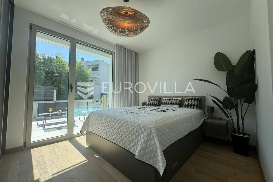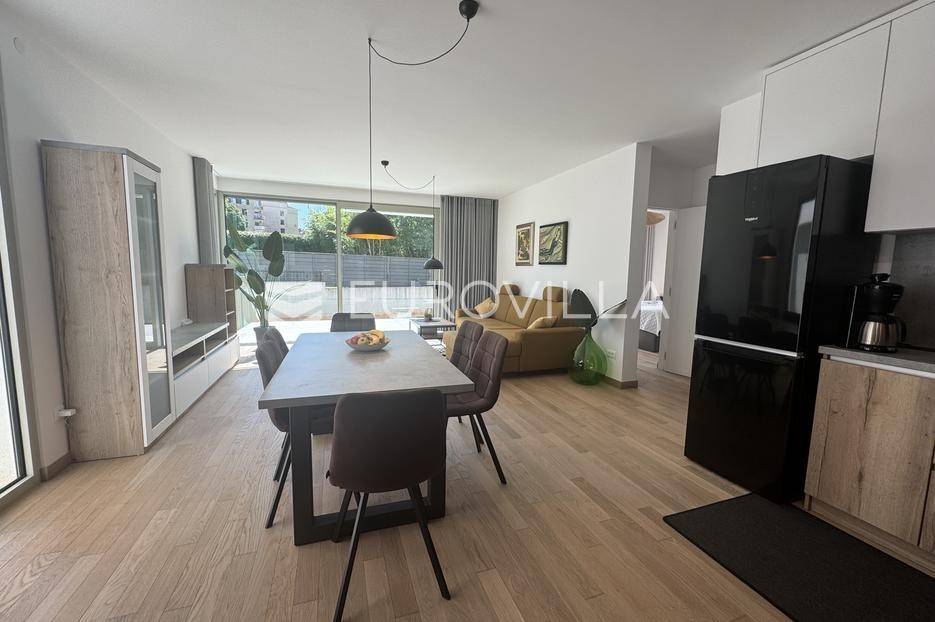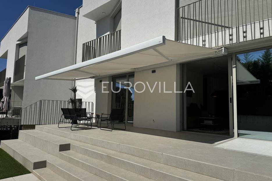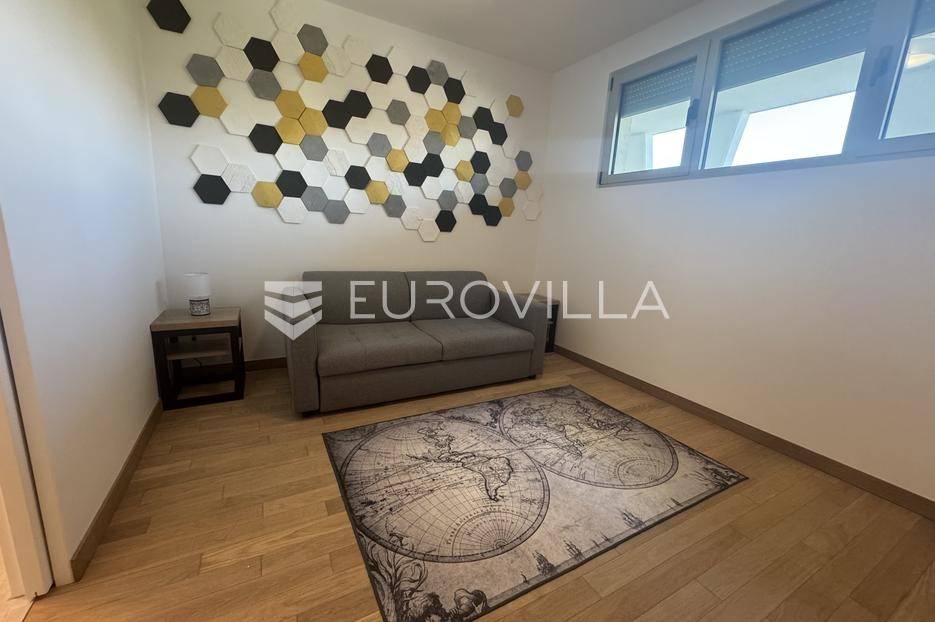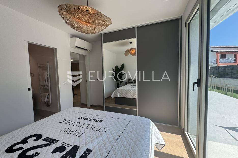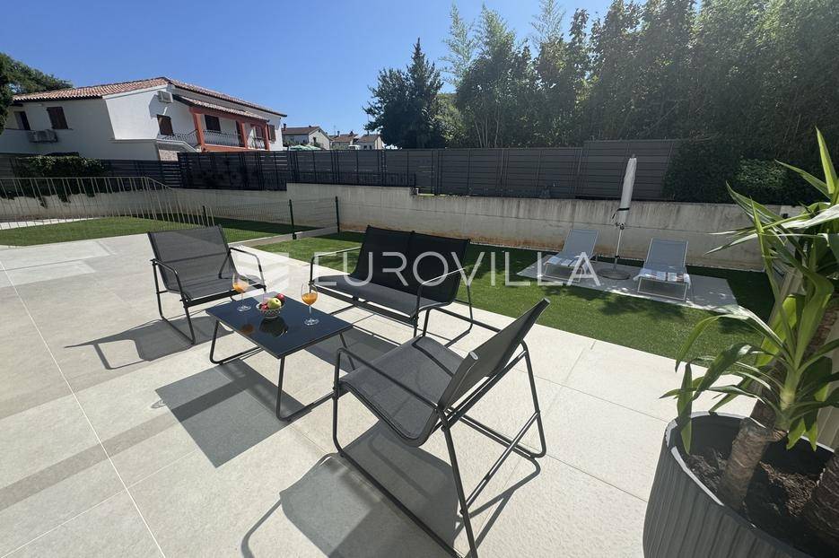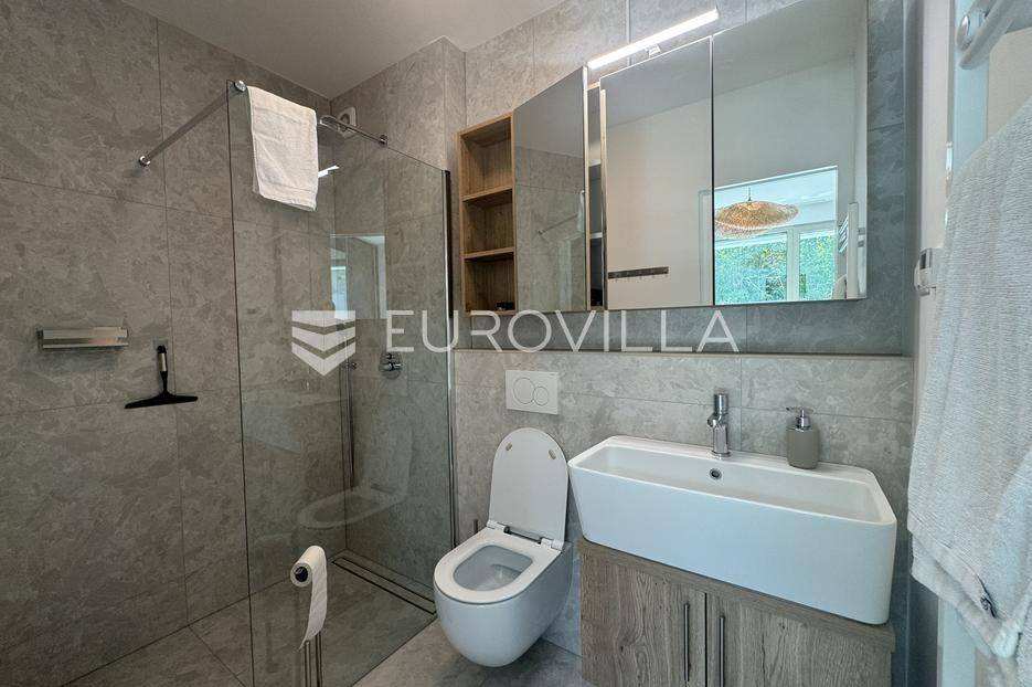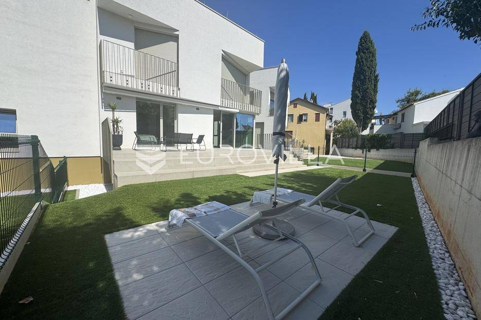 Istra, Rovinj, dugoročni najam predivnog modernog stana u visokom prizemlju s dvije spavaće sobe 101m2, vrtom 150m2 te ograđenim parkirnim mjestom.Stan se nalazi u novogradnji a sastoji se od prostranog dnevnog boravka, kuhinje i blagovaone otvorenog tlocrta s izlazom na prekrasnu terasu i uređeni vrt, gostinjskog toaleta, vešeraja, te hodnika koji vodi prema dvije spavaće sobe svaka s vlastitom kupaonom.Stan sadrži podno grijanje te su sve prostorije klimatizirane.Stan je opremljen svim potrebnim kućanskim aparatima poput perilice za suđe, perilice za rublje, pećnice, mikrovalne, frižidera te ostalih malih kućanskih aparata.Stan posjeduje vlastito parkirno mjesto ispred zgrade.Mogućnost najma i garaže uz nadoplatu.Stan se iznajmljuje na minimalno godinu dana uz obavezan potpis ugovora te depozit u visini dvije mjesečne najamnine.Stan se nalazi na odličnoj lokaciji, 10 minuta pješke udaljen od uređenih plaža te 15 minuta hoda d centra grada. U neposrednoj blizini nalazi se supermarket, škola, ljekarne te ostali sadržaji.Za više informacija stojimo vam na raspolaganju.... Više na eurovilla.hr, ID: 838118