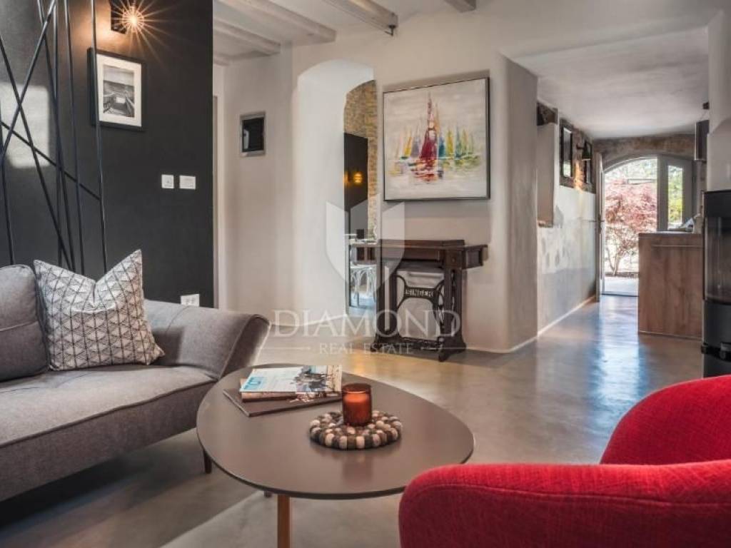 A unique stone house of outstanding design is for sale, with a total living area of 135 m², surrounded by a 298 m² yard. The house was completely restored from the ground up in 2019 under the guidance of two renowned designers, with exceptional attention to detail, functionality, and aesthetics.