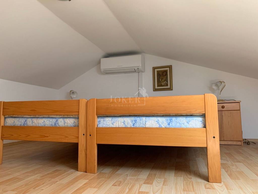 Stan je potpuno obnovljen i ukusno uređen, spreman za useljenje bez dodatnih ulaganja. Posebna prednost je potkrovlje (visine cca 1,7 m u najvišem dijelu), koje je novo uređeno i prenamijenjeno u dodatnu spavaću sobu – idealno za goste ili kao intiman kutak za odmor.