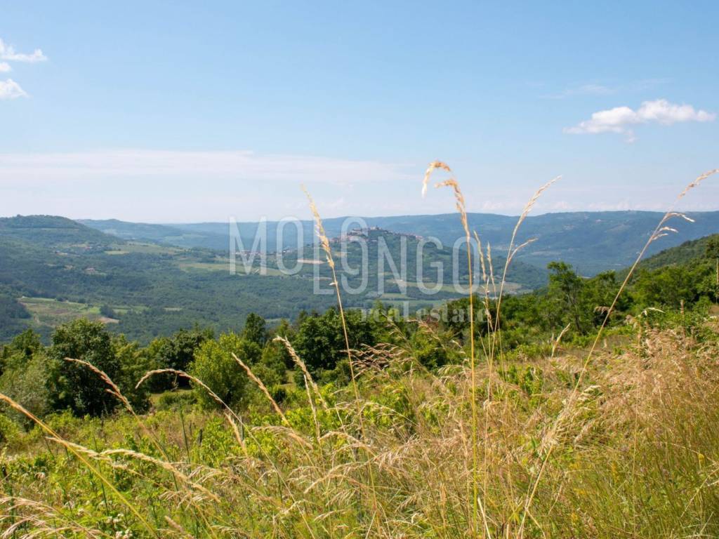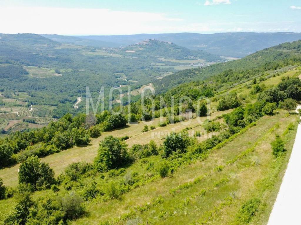 Na prodaju je izuzetno atraktivno građevinsko zemljište ukupne površine 3667 m², smješteno u blizini pitoresknog mjesta nadomak Motovuna, s otvorenim panoramskim pogledom na Motovun, Kaldir i okolni krajolik.