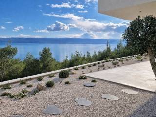 A modern, newly built villa with a stunning panoramic sea view is for sale, located in a peaceful area near the town of Omiš. The villa is set on a plot of 521 m² and extends over two floors, with a total living area of 234.34 m². The first floor features a spacious open-plan kitchen, dining area and living room, as well as a guest toilet, storage room and technical room. The outdoor area includes an additional toilet, a summer kitchen, a comfortable lounge area, and a swimming pool with a surface area of 26.80 m², ideal for relaxation and enjoying the Mediterranean lifestyle. The second floor is designed for rest and privacy and comprises four bedrooms, each with its own en-suite bathroom, along with a laundry room, an anteroom and a hallway. Parking for several vehicles is provided on the ground level. All rooms offer a breathtaking panoramic view of the sea and the island of Brač. The villa is sold fully furnished and equipped.