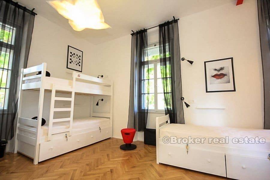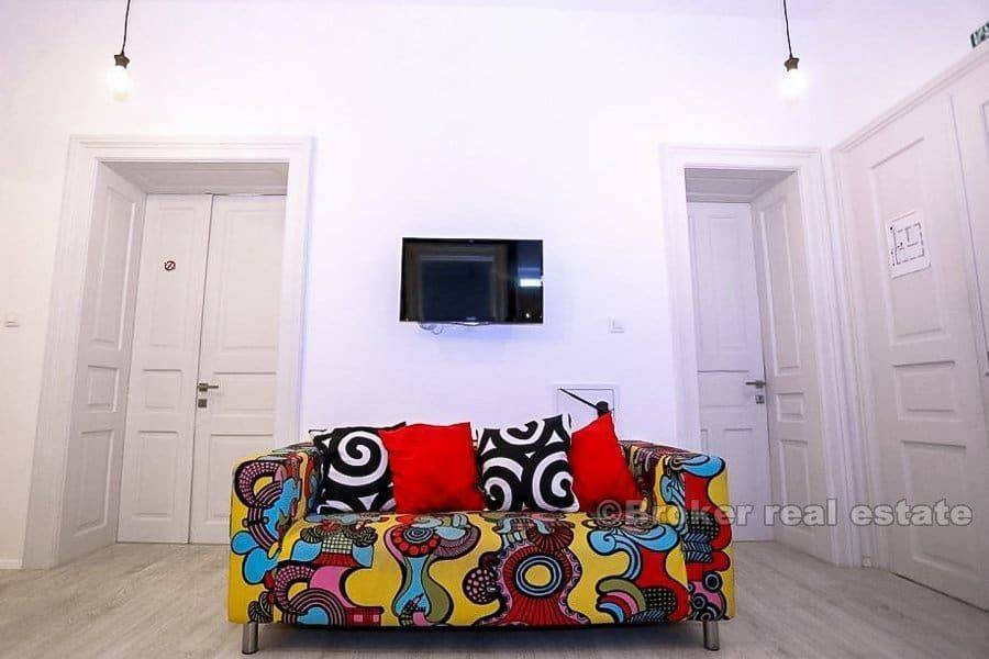 Great business offer in the form of a hostel, for sale, located in the center of Zadar, in a very good location close to all the facilities and major sight-seeings of this historic city, as well as the famous city beaches. The property is located on the high ground floor of a residential building, in a completely renovated old style apartment with 105 m2 of living space, fully furnished and equipped. The hostel has been in operation for 7 years and has recorded excellent business results, which can be seen in the excellent booking for the upcoming season. The apartment layout consist of the large lobby where the reception and the shared kitchen are located, as well as the shared bathroom for the hostel users; three double bedrooms, one of which has a separate bathroom; one four-bed dormitory, and a large bedroom with 9 beds and two bathrooms for the users of this room. Also, the hostel also has a storage of 12 m2 in the basement of the building, which is used as laundry, and a garage of 12 m2, which is used as a pantry. There is an option to purchase an additional 30 m2 that needs to be renovated, also located within the building and could ideally fit into the whole idea of ​​the hostel in such a way as to provide a small bar or a smaller restaurant for the hostel users. A very interesting offer, considering all the potential it offers, as well as the excellent position it is on. Considering that Zadar has an increased number of overnight stays every year, this investment represents a safe investment in the tourist sector of this beautiful city.