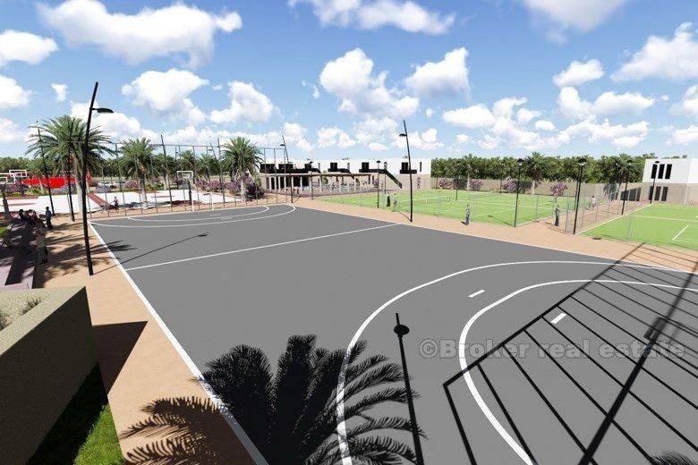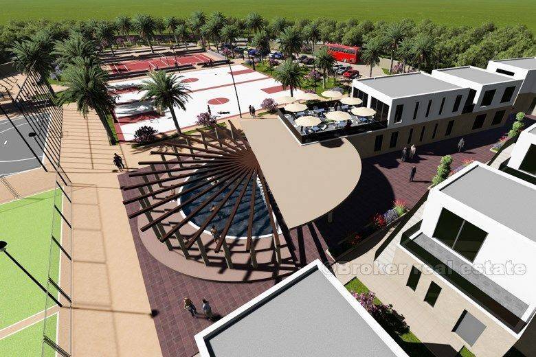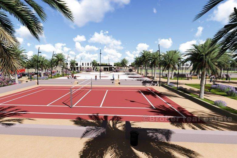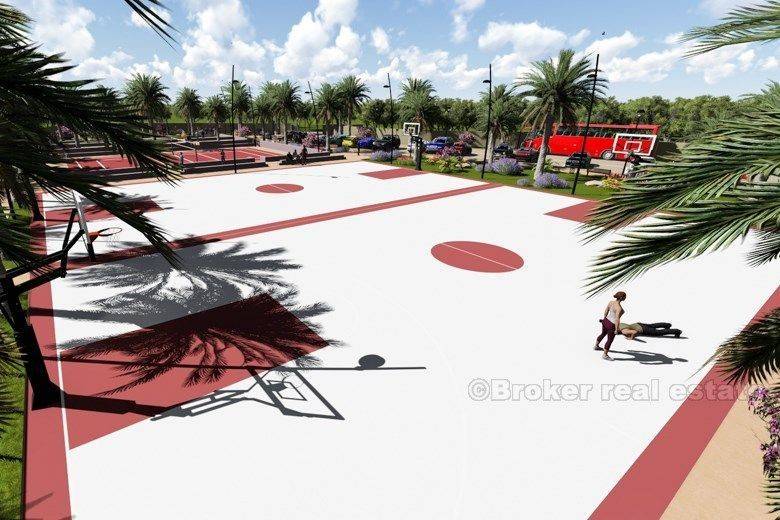 Projekt sportsko-rekreacijskog centra, na otoku Braču, prostire se na 16 000 m2 zemljišta. Zemljište je udaljeno oko 400 metara od mora. Na parceli su dovedeni struja, te ima 2-3 priključka za vodu. Asfaltirani put vodi do samog ulaza na zemljište. Ishodovana je građevinska dozvola, koja je važeća. Po njoj, planirana su oko 42 ležaja. 8 kuća, prizemlje + kat, površine 100 m2, te 3 veće kuće. U tom sportsko-rekreacijskom centru nalazili bi se još i restoran, caffe bar te razne sportske aktivnosti, kao šta su tereni za tenis, košarku, nogomet, rukomet, odbojku… Cijena uključuje zemljište, sve dokumente i dozvole (građevinska dozvola). Ishodovani su svi potrebni dokumenti za početak izgradnje.