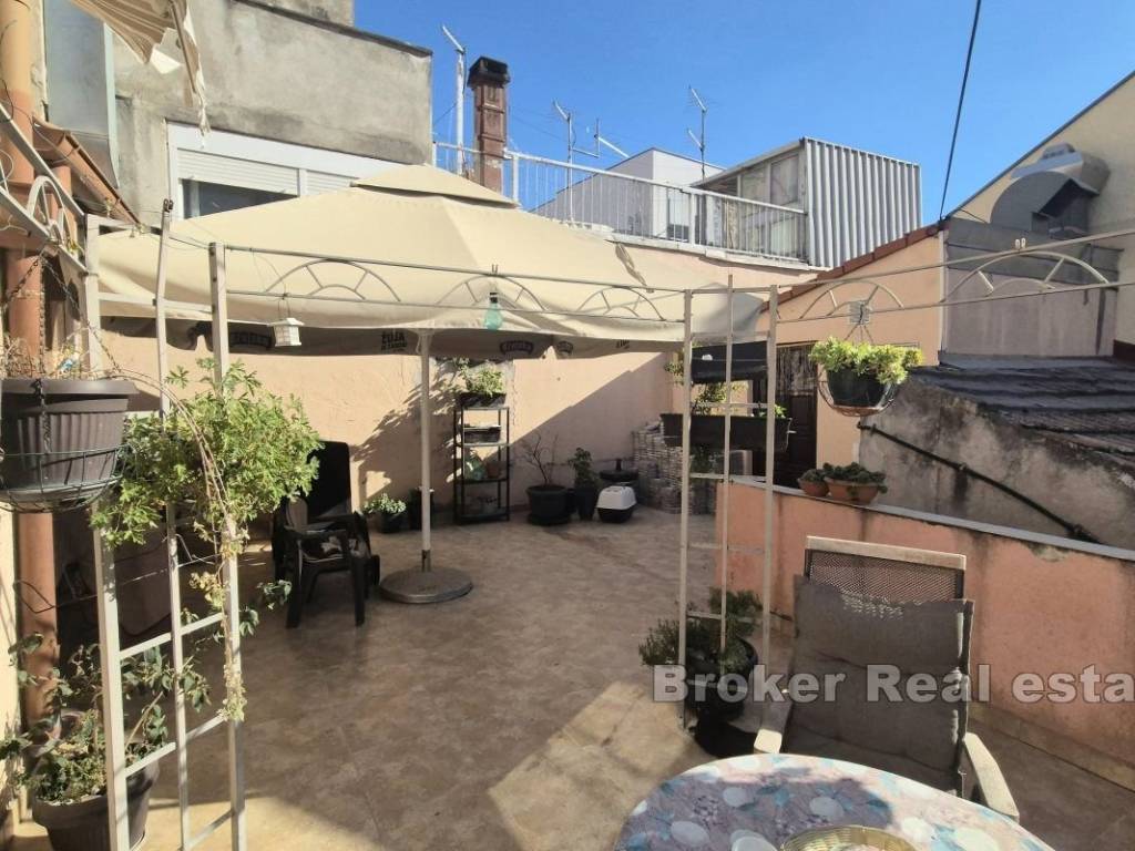 A two-story apartment is for sale on the first floor of a house, featuring a large terrace that offers a comfortable space for relaxation, located in the city center.   The apartment includes a living room, kitchen, two bedrooms, and a bathroom on the first floor, while the second floor contains two additional bedrooms. The total living area is 90 square meters, and the terrace covers 50 square meters. Thanks to its prime location, this apartment is perfect for tourist rentals.   Its location is especially attractive for tourists, providing easy access to supermarkets, restaurants, and major city landmarks.
