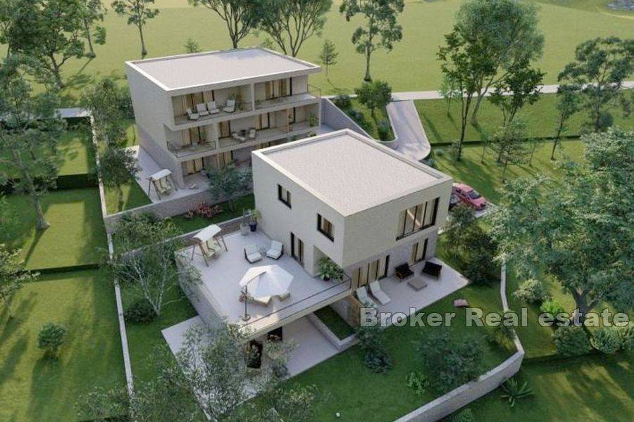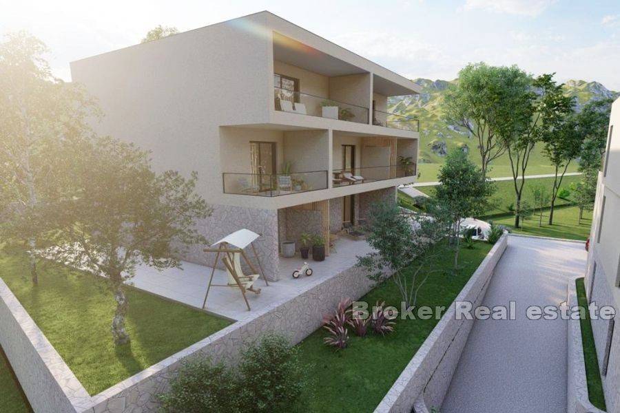 Građevno zemljište u Kaštelima, s pogledom na more i sa idejnim projektom za gradnju dvije stambene zgrade. Zemljište ima ukupnu površinu od 1559 m2, a smješteno je na jako kvalitetnoj lokaciji sa dobrim cestovnim pristupom, a sa koje se pruža odličan otvoreni pogled na more. U cijenu zemljišta ulazi i idejni projekt za gradnju dvije stambene zgrade, sa ukupno 12 stanova. Jedna zgrada je manja te će planirana za 4 stana, dok je veća zgrada planirana za 8 stanova. Zgrade se sastoje od podruma, prizemlja i dva kata. U prodrumu su planirana garažna mjesta i ostava za svaki stan, dok je na vanjskom parkingu planirano također po jedno parkirno mjesto. Obzirom na poziciju sa atraktivnim pogledom, sam pristup nekretnini, te modernu buduću planiranu građevinu, ova ponuda predstavlja odličnu priliku za investitore, a sama Kaštela postaju sve popularnija destinacija za kupnju nekretnine, obzirom na blizinu Splita i mirniji način života.