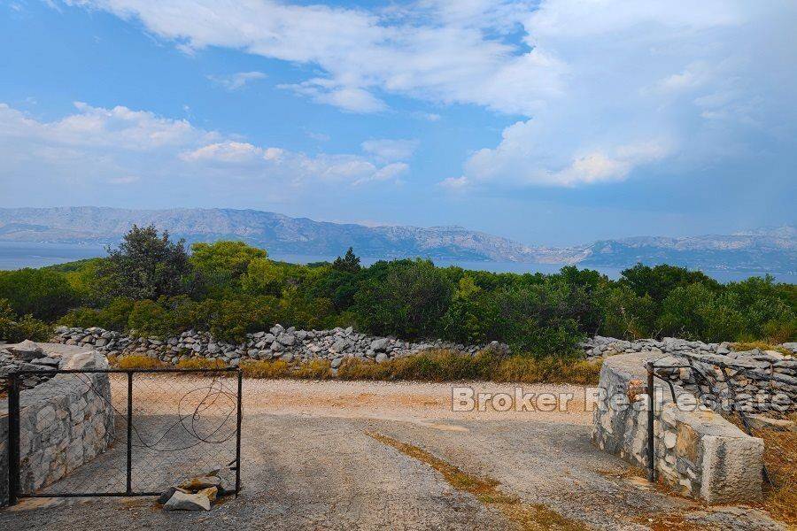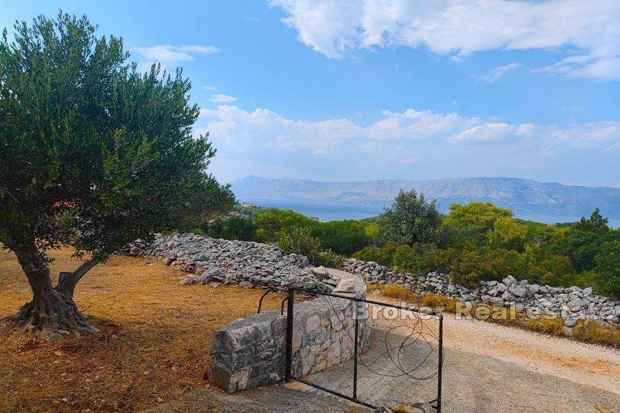 Poljoprivedno zemljište s pogledom na more. Poljoprivredno zemljište s pogledom na more. Zemljište se nalazi 500 m od mora i centra manjeg ribarskog mjesta na otoku Braču. Zemljište ima svoj široki pristupni put kao i ostalu infrastrukturu , voda i struja su odmah do njega. Na samom zemljištu može se izgraditi objekt tlocrtne površine 400 m2 pod uvjetom da se zemljište kultivira odnosno da na sebi ima trajne zasade masline (ili druge mediteranske kulture) u min. 70 % svoje površine, odnosno da se na njemu registrira malo obiteljsko gospodarstvo. Blizina trgovina i restorana. Udaljenost od trajektne luka 10 km.